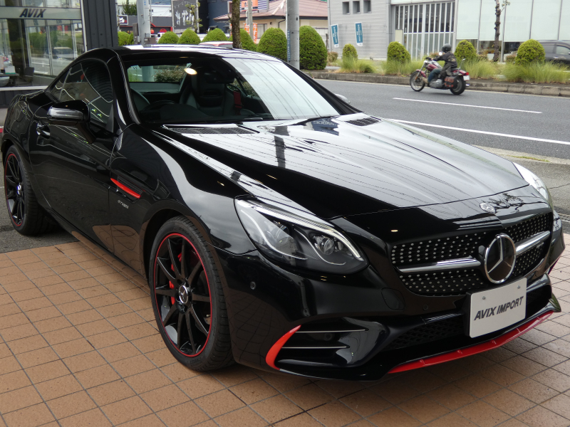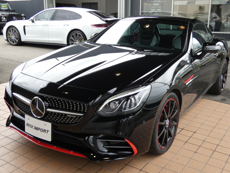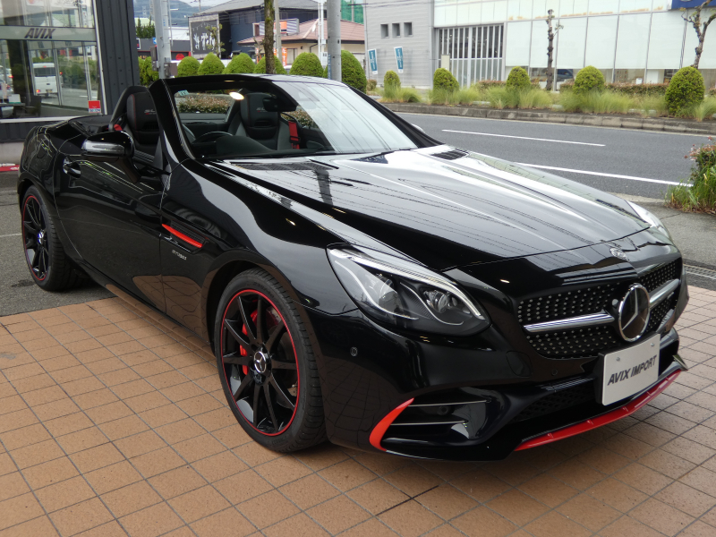 AMG SLC SLC43 レッドアートエディション 特別仕様車 RSP ブラック/シルバーパールレザー カーボンインテリア シートヒーター マジックスカイコントロールパノラミックバリオルーフ 純正ナビ地デジBカメラ ハーマンカードン レッドキャリパー 専用18AW(ブラック) 禁煙 正規D車