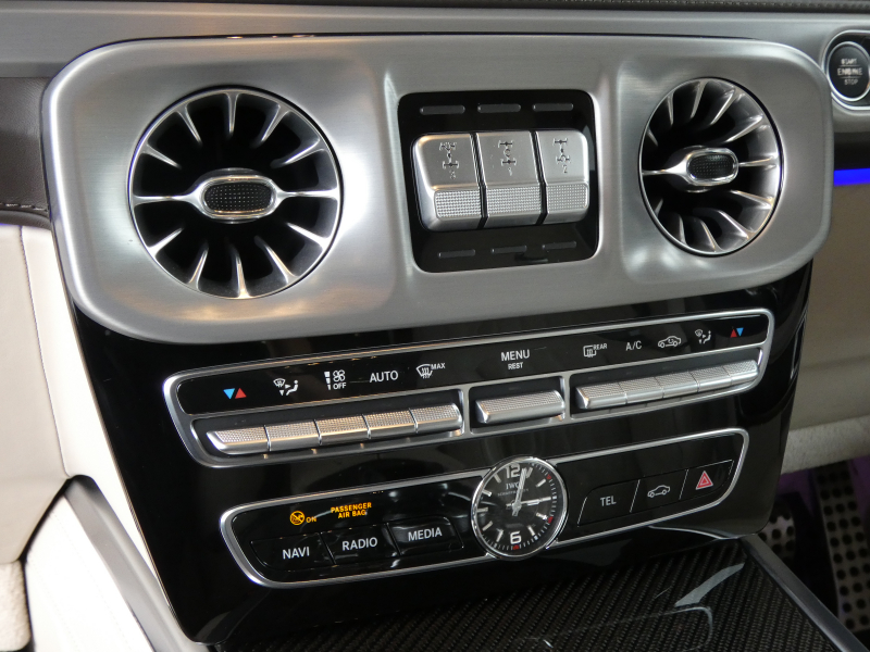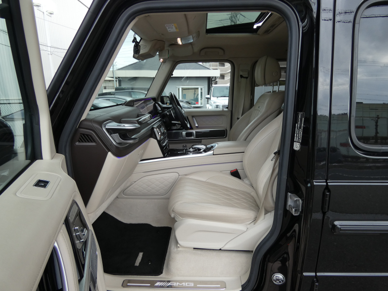 AMG Gクラス G63 AMGレザーエクスクルーシブPKG カーボンインテリア アダプティブダンピング ガラスSR ベージュナッパ革 ベンチレーター リラクゼーション RSP 純正HDDナビ地デジ360°カメラ Burmesterサウンド AMG21AW 禁煙 右H 正規D車