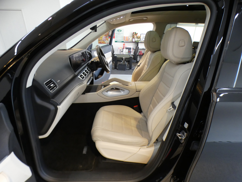 メルセデスベンツ GLS GLS400d 4MATIC AMGライン ブラックアウト仕様 オフロードエンジニアリングPKG レーダーセーフティPKG パノラマSR ベージュ革 7人乗 HUD MBUXナビ地デジ360°カメラ 後席ヘッドレストツインモニター burmesterサウンド エアサス AMG21AW 禁煙 1オナ 正規D車
