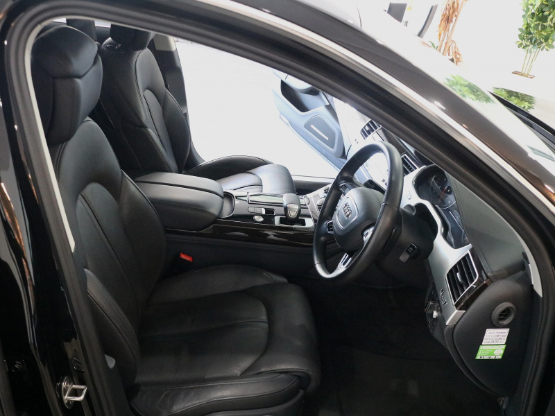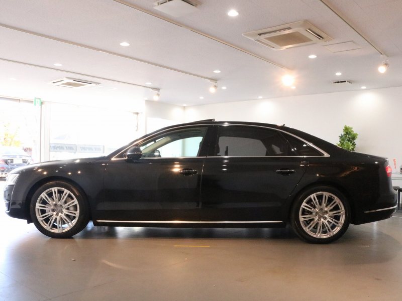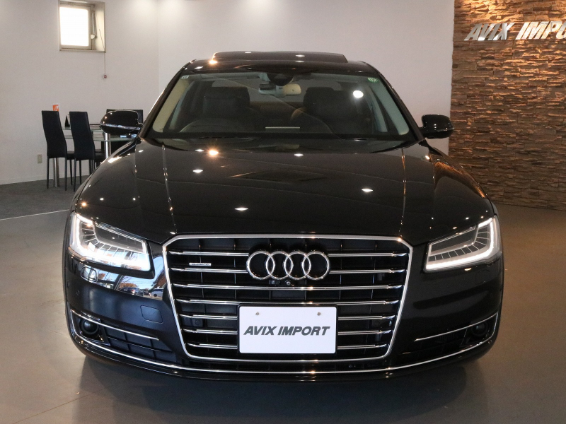 洗練された後期型!! 豪華装備ロングボディ!! 取説・記録簿付 事故歴ありません!! 人気の外装色ミトスブラックに純正20インチアルミホイール&迫力のマトリクスLEDヘッドライト付!! 使用感は少なくフルレザーパッケージの室内は落ち着いたブラックレザーシートにロングボディならではの快適な全席シートヒーター&ベンチレーター&マッサージ機能、コンフォートシート、リアシートエンターテイメント、4ゾーンエアコンも完備され開放感有るガラスサンルーフが装備!! ヘッドアップディスプレイがオプション装備され、使い勝手の良いアドバンストキーや便利なパワークロージングドア&オートマチックトランクリッドが完備され運転操作をサポートするACC(アダプティブクルーズコントロール)・サイドアシスト&ALA(アクティブレーンアシスト)やサラウンドビューカメラ&パーキングエイドと豪華装備満載です!! DOHC V型8気筒インタークーラー付ターボチャージャーエンジン&電子制御8速AT、クワトロシステム&アウディドライブセレクトにより走りのシチュエーションを選ばない卓越したパフォーマンスを実現!! 実用性と先進性を兼ね揃えた人気車輌をお届け致します!!