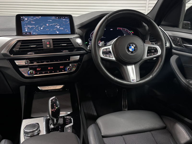 取説・記録簿付 事故歴ありません!! 人気の外装色ブラックサファイア!! Mスポーツ専用エクステリアに純正19インチアルミホイールが装備され迫力有るエクステリアを演出!! SUV特有の使用感はとても少なく室内は落ち着いたブラックハーフレザーシートに快適なシートヒーター&3ゾーンエアコンが完備され快適装備も豊富です!! 使い勝手の良いコンフォートアクセス&オートマチックテールゲートに運転操作をサポートするヘッドアップディスプレイやパーキングアシストプラス&ドライビングアシストプラスが安全運転を全面的にサポート!! DOHC直列4気筒ディーゼルターボエンジンが卓越したパワーとレスポンスを実現し電子制御8速AT&アイドリングストップ機構が燃費向上を実現!! G01型 X3ディーゼルモデルをお探しの方は是非お急ぎ下さい!!