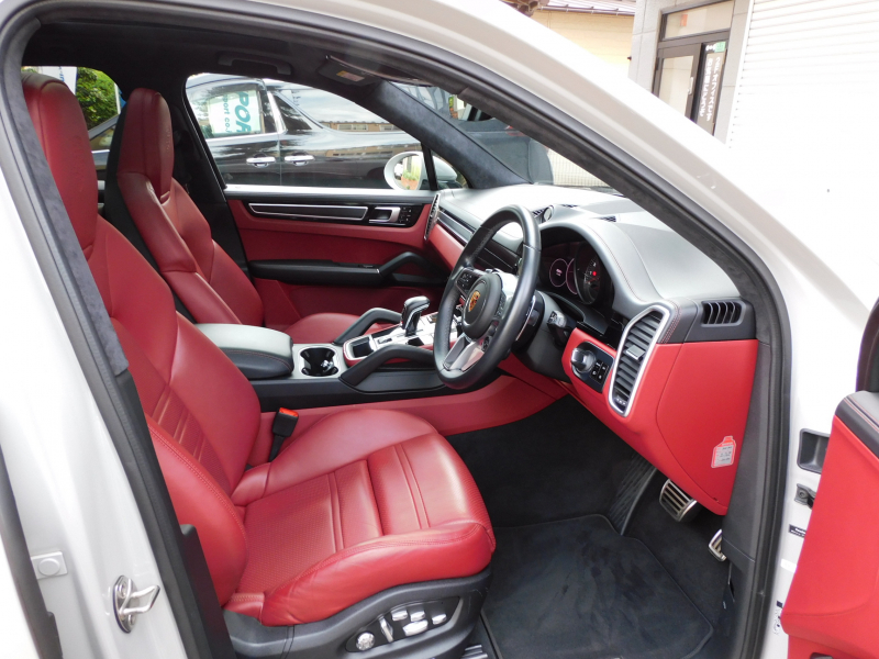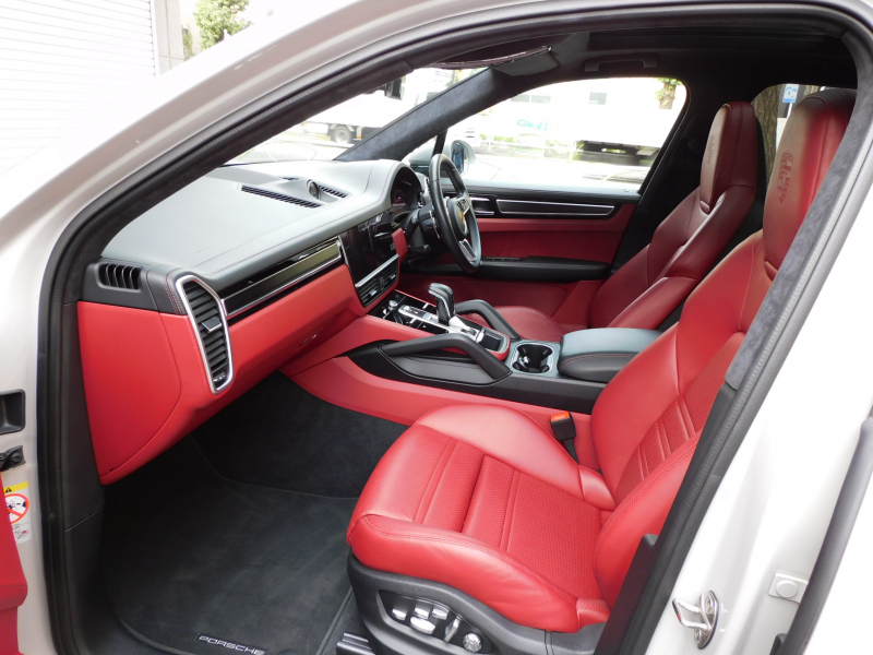 取説・記録簿付 もちろん事故歴御座いません!! 安心の右ハンドル、正規ディーラー車!! ポルシェで今最も人気の外装色クレヨンにGTS専用エクステリア&21インチRSスパイダーデザインホイール&レッドペイントブレーキキャリパー、PDLS付ティンテッドLEDヘッドライト&テールライトが迫力有るエクステリアを演出!! SUV特有の使用感はとても少なく心地良い禁煙の室内は開放感有るパノラミックルーフシステムに鮮やかなブラック/ボルドーレッドツートンレザーインテリア&高級感漂うエンボス加工ヘッドレスト、快適な18Way電動アダプティブスポーツシート(メモリー付)&全席シートヒーター付!! 高解像度12.3インチタッチスクリーンを採用し、より一層使い勝手の良くなったPCMナビ(ポルシェコミュニケーションマネジメントシステム)に夜間のインテリアを彩るアンビエントライトが装備!! 便利なソフトクーズドアやオートマチックテールゲート(バーチャルペダル付)、運転をサポートするサラウンドビュー付パークアシストシステム、ACC(アダプティブクルーズコントロール)&LCA(レーンチェンジアシスト)が装備!! ドライビングプレジャーを掻き立てるスポーツクロノパッケージに4.0L V8ツインターボエンジン&PASMやPTVプラス、スポーツエグゾーストが相まって言葉に尽くせないドライビングの醍醐味を堪能することができます!! カイエンGTSをお探しの方は是非お急ぎ下さい!!