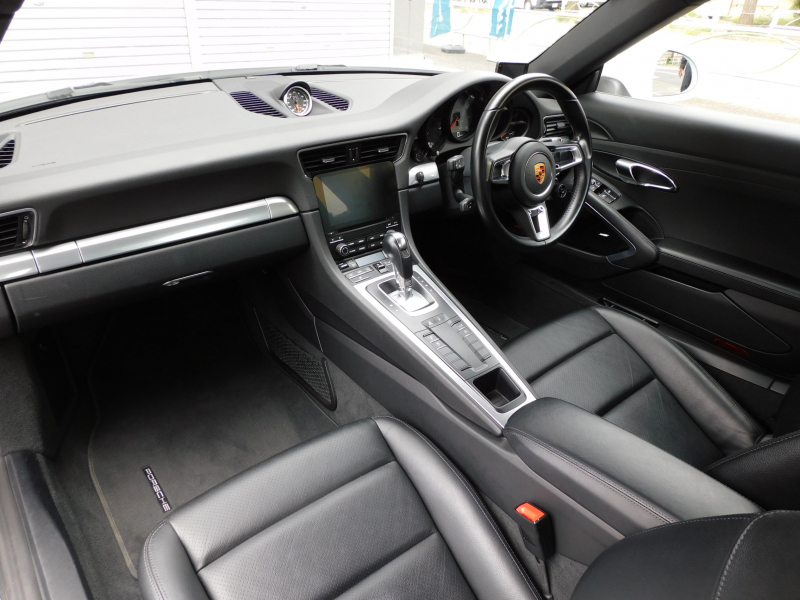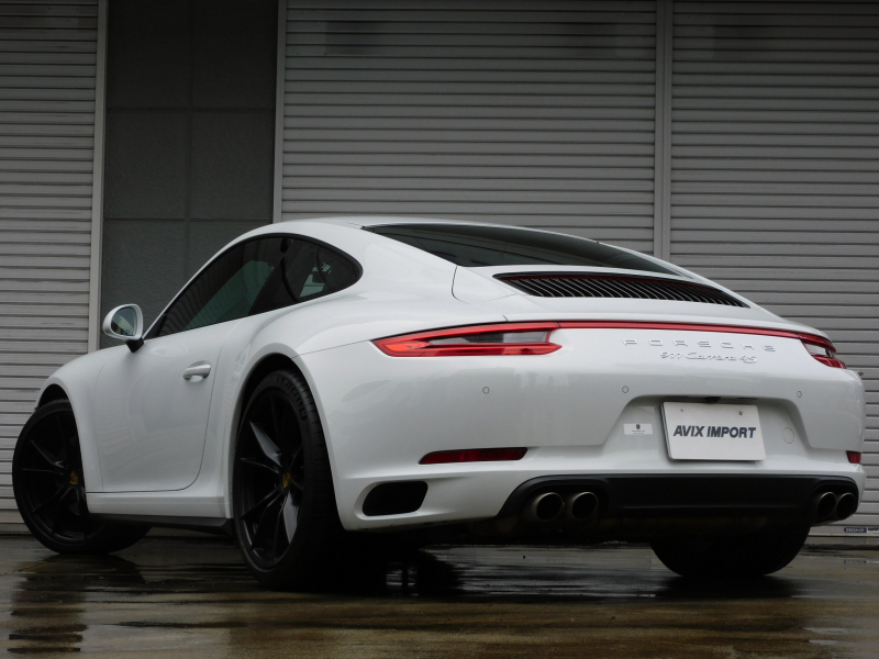 洗練された後期型!! 上級グレードSに希少な4WDモデル!! 3L水平対向6気筒ツインターボエンジン搭載!! 安心の正規ディーラー車!! 運転しやすい右ハンドル、7速PDK搭載!! 取説・記録簿付 もちろん事故歴ありません!! 綺麗な外装色ホワイト!! ワイドリアフェンダーが特徴的な4WDモデルのフォルムにスポーツテールパイプ&ブラックペイントが施された20インチカレラSホイール&レッドペイントキャリパーが迫力有るエクステリアを演出!! 室内は高級感漂うアルカンターラルーフライニングに落ち着いたブラックレザシート&快適なシートヒーター、GTスポーツステアリング、高級感漂うエンボス加工ヘッドレストが装備!! 運転操作をサポートするリアビューカメラ付パークアシストシステム、クルーズコントロールに便利な電動可倒式ドアミラーが完備され、後期型より採用された高解像度7インチタッチスクリーンを採用したPCMナビ(ポルシェコミュニケーションマネジメントシステム)にBOSEサウンドシステム搭載!! ドライビングプレジャーを掻き立てるスポーツクロノパッケージに出力420ps(カタログ値)を発生する水平対向6気筒ツインターボエンジン&PASM&PTVプラスが相まって卓越したパフォーマンスをご堪能できます!! 後期型911(Type991.2)、希少グレード4Sをお探しの方は是非お急ぎ下さい!!