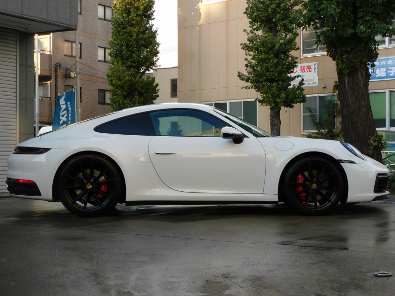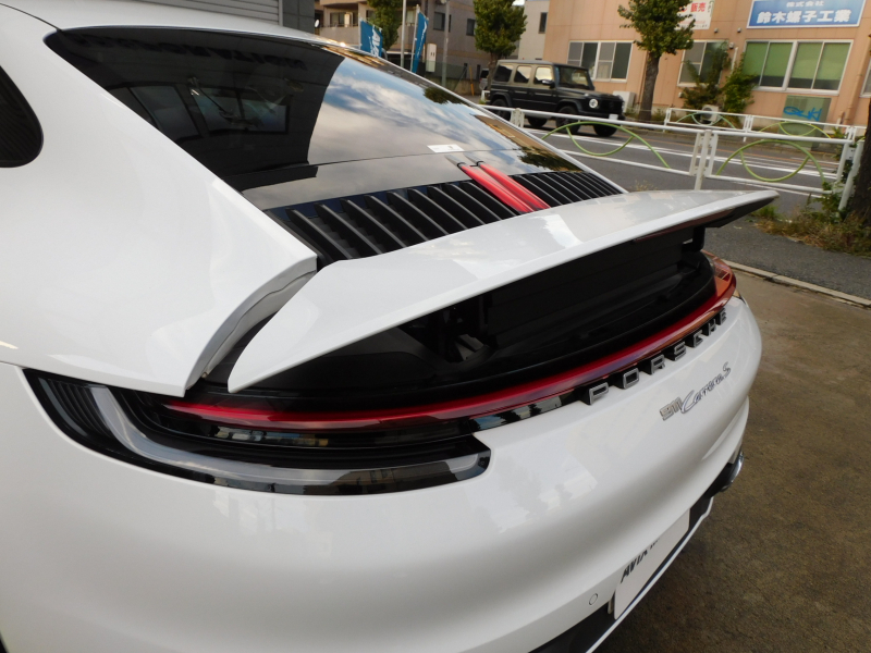 上級グレードS!! 3L水平対向6気筒ツインターボエンジン搭載!! 安心の正規ディーラー車!! 運転しやすい右ハンドル、8速PDK搭載!! 取説・記録簿付 もちろん事故歴ありません!! 綺麗な外装色ホワイトに20/21インチカレラSホイール(ブラック)&レッドペイントブレーキキャリパーが装備され迫力有るエクステリアを演出!! 心地よい禁煙の室内は落ち着いたブラックレザーシートに14Wayメモリー付パワーシート&シートヒーター付!! 運転操作をサポートするサラウンドビューカメラ付パークアシストシステムにクルーズコントロール、LCA(レーンチェンジアシスト)、電動可倒式ドアミラー付!! 高解像度10.9インチタッチスクリーンを採用したPCMナビ(ポルシェコミュニケーションマネジメントシステム)搭載!! ドライビングプレジャーを掻き立てるスポーツクロノパッケージ&スポーツエグゾーストに出力450ps(カタログ値)を発生する水平対向6気筒ツインターボエンジン&PASMやPTVプラスが相まって卓越したパフォーマンスをご堪能できます!! 911(Type992)カレラSをお探しの方は是非お急ぎ下さい!!