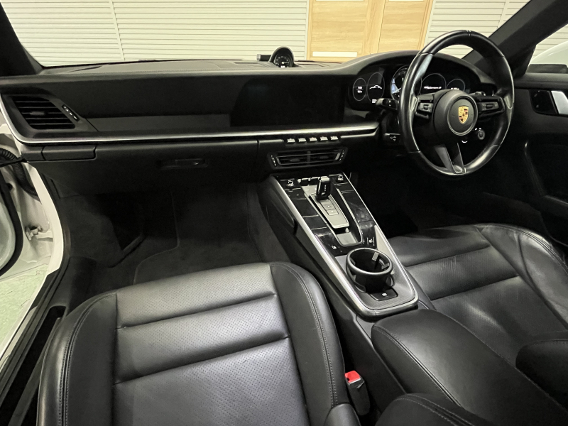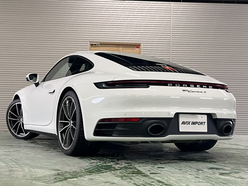 上級グレードS!! 3L水平対向6気筒ツインターボエンジン搭載!! 安心の正規ディーラー車!! 運転しやすい右ハンドル、8速PDK搭載!! 取説・記録簿付 もちろん事故歴ありません!! 綺麗な外装色ホワイトに20/21インチカレラクラシックホイール&レッドペイントブレーキキャリパーが装備され迫力有るエクステリアを演出!! 心地よい禁煙の室内はマットカーボンインテリア&ブラックレザーシートの組み合わせにシートヒーター付!! 運転操作をサポートするサラウンドビューカメラ付パークアシストシステムにクルーズコントロール、LCA(レーンチェンジアシスト)、便利なコンフォートアクセスや電動可倒式ドアミラー、夜間の運転をサポートするLEDヘッドライト(PDLS付)付!! 高解像度10.9インチタッチスクリーンを採用したPCMナビ(ポルシェコミュニケーションマネジメントシステム)搭載!! ドライビングプレジャーを掻き立てるスポーツクロノパッケージ&スポーツエグゾーストに出力450ps(カタログ値)を発生する水平対向6気筒ツインターボエンジン&PASMやPTVプラスが相まって卓越したパフォーマンスをご堪能できます!! 911(Type992)カレラSをお探しの方は是非お急ぎ下さい!!