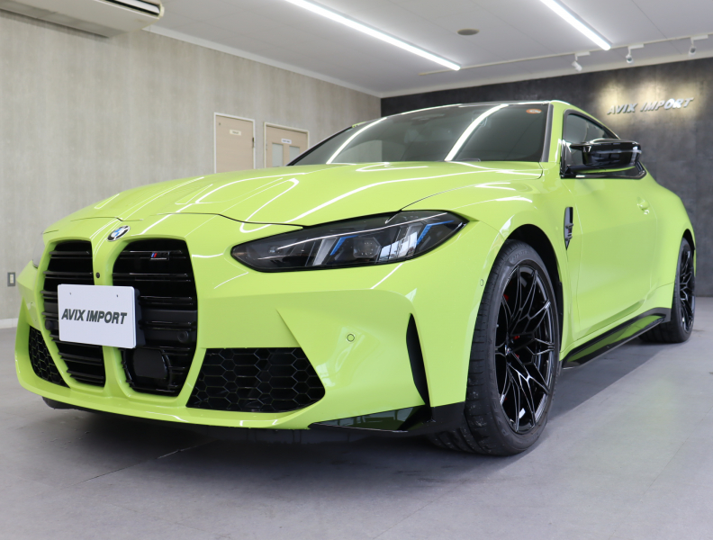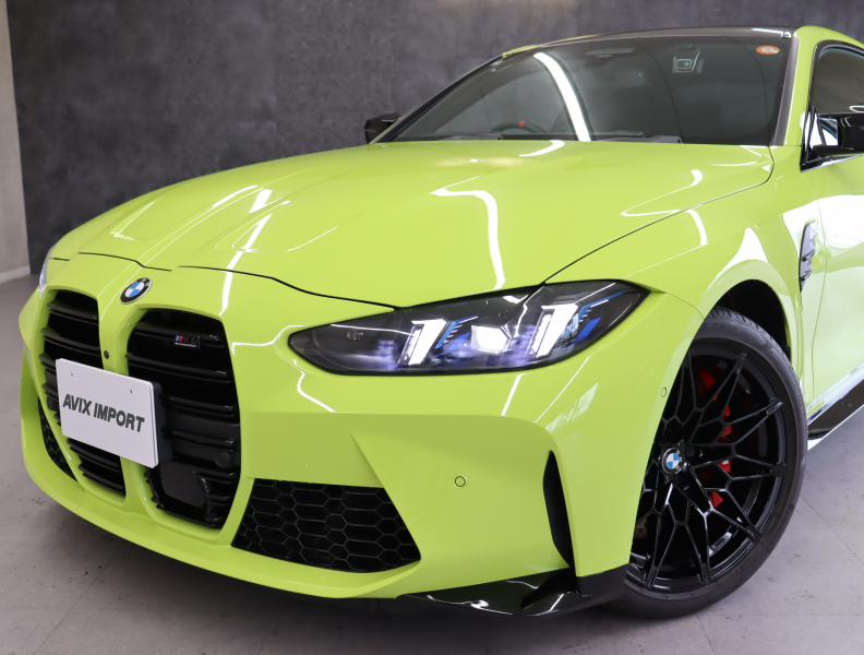 2025y BMW M4 Competition M xDrive クーペ 純正サンパウロイエロー/ブラックレザーシート 正規ディーラー車 禁煙1オーナー 新車保証継承 右H 取説・記録簿付 事故歴無 試乗可能 全国販売・全国納車可能 納車整備(消耗品含) 3ヶ月/3,000km保証付販売