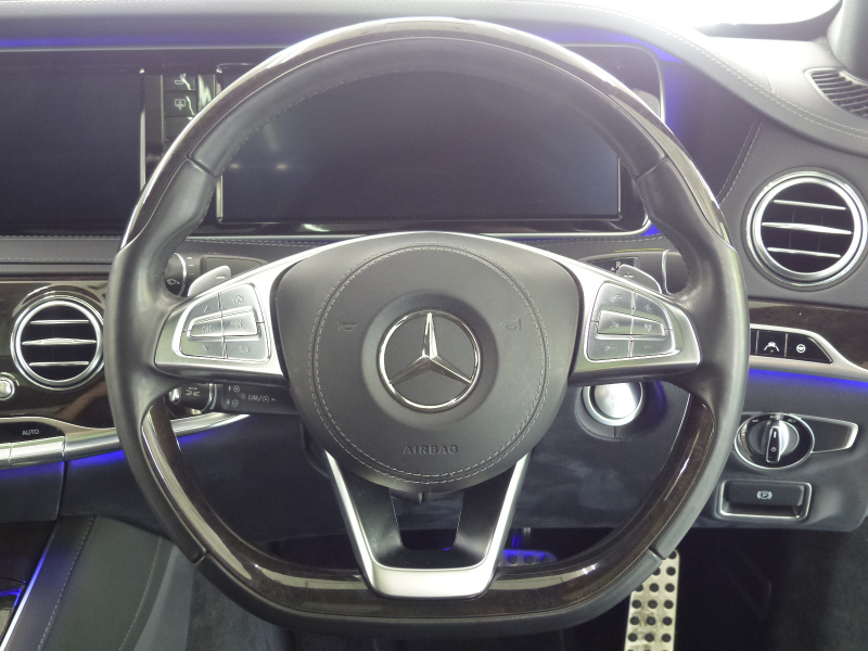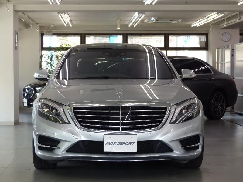 専門店ならではの1台!! 安心の右ハンドル!! 禁煙車 取説・記録簿付き もちろん修復歴御座いません!! 外装色はメルセデスの象徴、鮮やかなイリジウムシルバー!! AMGラインならではのAMGスタイリングフロントスポイラー・サイド&リアスカート・Mercedes-Benzロゴ付ブレーキキャリパー・19インチAMG5ツインスポークアルミホイールが装備され、スポーティーかつダイナミックなスタイリングを演出!! 内装は上級グレードならではの高級感漂うブラックナッパレザーシート&ブラックハイグロスポプラウッドパネルの組み合わせ!! 最高出力455PS(カタログ値)のハイパワーを発揮する新開発4.7L V型8気筒直噴ツインターボBlueDIRECTエンジンと9G-TRONIC&ECOスタートストップシステムが、Sクラスにふさわしい走行性を発揮しつつかつてない環境性能を実現しています!! 機能装備についてもW222より12.3インチ大型TFTカラーディスプレイがメーター表示部とナビ表示部に2台設置!! メルセデスが先進技術を投入した安全支援システム、レーダーセーフティーパッケージが標準装備されており、安全運転を全面的にサポートし事故を未然に防いでくれます!! 上級グレードS550ロングならではの360度カメラシステムや快適な室内空間を演出するエアバランスパッケージの他、パノラミックスライディングルーフ・前後席ベンチレーター・Burmesterサラウンドサウンドシステム・電動ブラインド(後席左右、リアウィンドウ)・後席メモリー付パワーシート・クロージングサポーター等、Sクラスに相応しい豪華装備充実の一台です!! さらにはオプションのショーファーパッケージ(リアエンターテイメントシステム・前後席マッサージ機能付マルチコントロールシートバック・前席ドライビングダイナミックシート等)が装備され、同乗者も快適なドライビングが可能となります!! 内・外装共にとても綺麗でもちろん機関も良好!! 全てにおいて洗練されたW222・S550ロング AMGライン ショーファーパッケージをお探しの方是非ともこの機会をお見逃し無く!!