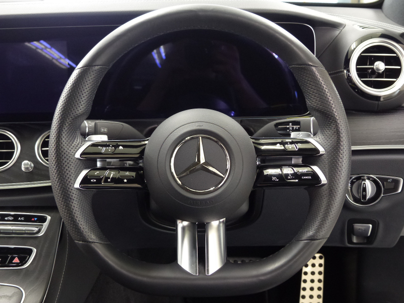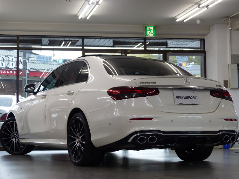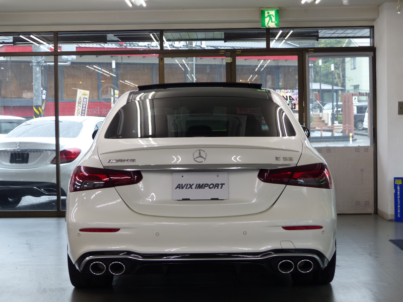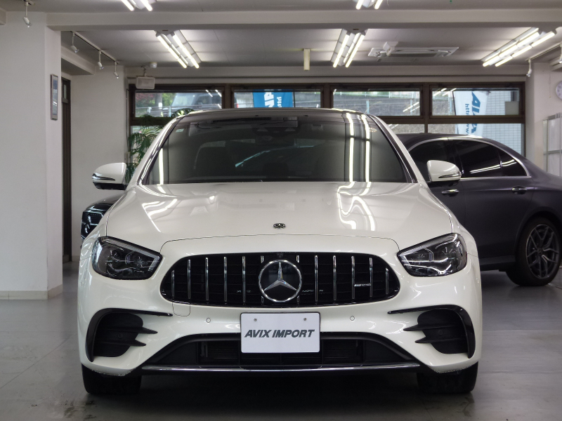緊急通報システムやスマートフォンで操作するリモートサービスパッケージを含むMercedes me connect搭載車!! 専門店ならではの1台!! 禁煙車 取説・記録簿付き もちろん修復歴御座いません!! 後期型よりフロントエンドのヘッドライトには、最新のメルセデス・ベンツのスポーティモデル群に共通する、上下方向に薄くわずかに切れ上がるデザインを採用!! ラジエーターグリルは下部が広がる台形となるとともに、クローム仕上げのダイヤモンドグリルを採用しシャープでダイナミックなエクステリアを演出!! 新世代ステアリングホイールを初採用した他、対話型インフォテインメントシステム「MBUX」や安全運転支援システムをメルセデス・ベンツの最新のシステムにアップデートするなど、安全性と快適性をさらに向上!! メルセデスが先進技術を投入した新開発の2.0L 直列4気筒直噴ターボエンジンに最新鋭9速オートマティック(9G-TRONIC)を採用!! 燃料消費とCO2排出量を低減するECOスタートストップ機能(アイドリングストップ機能)も装備され環境にも配慮されております!! さらにはAIR BODY CONTROLサスペンションが標準装備されており、快適性と俊敏性を高いレベルで両立しております!! 外装色は綺麗なオプションのダイヤモンドホワイト!! E53 Styleエアロや足元には拘りのハイグロスブラック20インチマルチスポークアルミホイールが装着され、スポーティーな外観を演出しております!! 内装は高級感漂うブラックナッパレザーシート&ブラックアッシュウッドインテリアトリムの組み合わせ!! S213より一体型デザインの高精細な2枚の12.3インチワイドディスプレイを採用!! 快適装備のメモリー付パワーシートや分割可倒式シート、キーレスゴーの他、便利な360度カメラや上級グレードならではの自動開閉トランクリッドが標準装備!! セーフティーにおきましては、ウルトラハイビーム付きマルチビームLEDヘッドライト・アテンションアシスト・アクティブパーキングアシストが装備!! またメルセデスが先進技術を投入した安全支援システム・レーダーセーフティーパッケージに、アクティブレーンチェンジングアシスト等の新たな機能が加わり、安全運転を全面的にサポートし事故を未然に防いでくれます!! さらにはオプションのパノラミックスライディングルーフやエクスクルーシブパッケージ(後席シートヒーター・Burmesterサラウンドサウンドシステム・ヘッドアップディスプレイ・エアバランスパッケージ)等、豪華装備充実の1台です!! 内・外装共にとても綺麗で機関も良好!! 経済性と環境性の高いW213後期型・E300スポーツ エクスクルーシブ&レーダーセーフティーパッケージをお探しの方、是非ご覧下さい!!