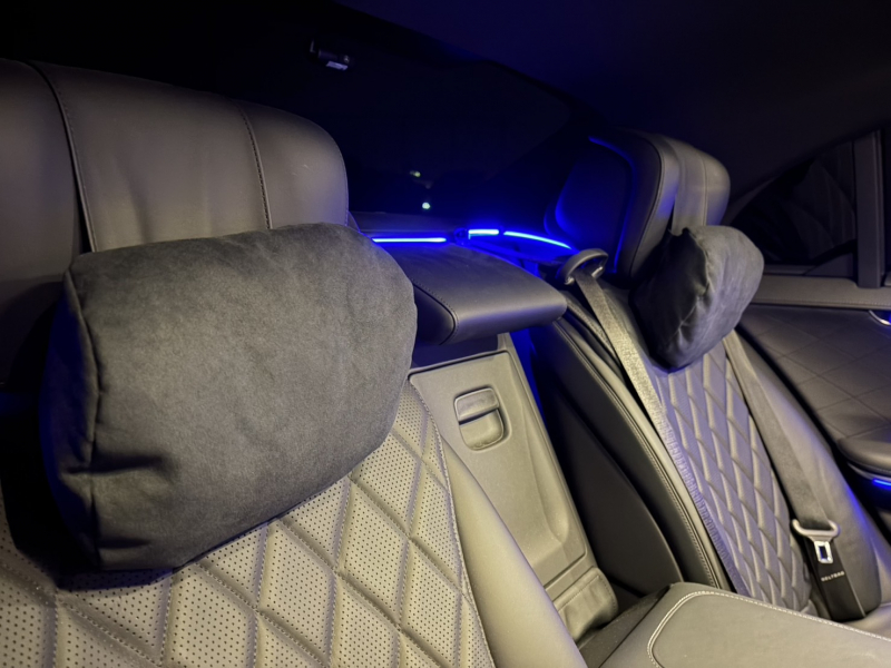(リアベルトバッグ、PRE-SAFEインパルス(前面衝突被害軽減機能)、サンプロテクションパッケージ[電動ブラインド(後席)、電動ブラインド(リアウインドウ)、ダブルサンバイザー]、ネック&ショルダーウォーマー(後席)、マルチコントロールシート機能(後席)、アクティブマルチコントロールシートバックパッケージ(運転席・助手席)、ラグジュアリーヘッドレスト(前席・後席)、助手席コントロール機能(後席)、デザインベルトバックル(前席・後席)、クライメートコントロール(後席)、シートヒータープラス(運転席・助手席)、シートヒータープラス(後席)、ショーファーポジションスイッチ、リアシートコンフォートパッケージ、MBUXリアタブレット、追加USBポート、ワイヤレスチャージング(後席)、ワイヤレスヘッドホン(2個))
