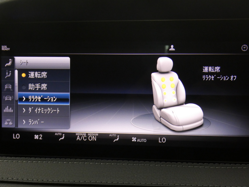 メモリー付パワーシート(運転席・助手席)、電動ランバーサポート(運転席・助手席)、シートヒーター(前席・後席)、シートベンチレーター(前席)、助手席コントロール機能(運転席)、アームレスト(前席・後席)