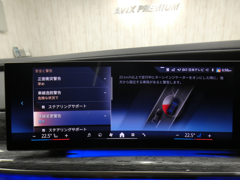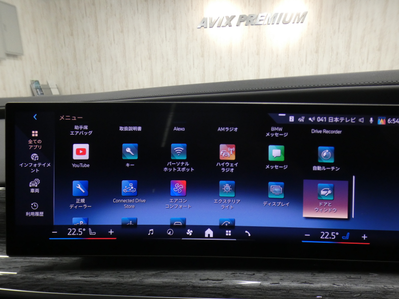 BMWライブ・コックピット(BMWカーブド・ディスプレイ、12.3インチ マルチ・ディスプレイ・メーター・パネル、14.9インチ ワイド・コントロール・ディスプレイ (タッチ・パネル機能付)、HDDナビゲーション・システム(VICS 3メディア対応)、BMWインテリジェント・パーソナル・アシスタント (AI音声会話システム))、ワイヤレス・チャージング、パーソナルeSIM、ハンズフリー・テレフォン・システム、ITSスポット対応DSRC車載器(ルーム・ミラー内蔵、ETC機能付)、電動式チルト&テレスコピック・ステアリング・コラム クラフテッド・クリスタル・フィニッシュ、アンビエント・ライト、BMWインタラクション・バー、オーディオ・ビジュアル・システム(地上デジタルTVチューナー)、USBオーディオ・インターフェイス、トラベル&コンフォート・システム(Type-C対応USBソケット(高速充電機能付))、4ゾーン・オートマチック・エア・コンディショナー (ナノ・ファイバー・フィルター〔花粉除去機能〕付)(運転席&助手席 独立温度調節機能 後席左右 独立温度調節機能 パーキング・ベンチレーション リモート・クライメート・コントロール機能)、シート(マルチファンクション・シート(運転席&助手席、メモリー機能付) アクティブ・ベンチレーション・シート(運転席&助手席)、マッサージ・シート(運転席&助手席)、シート・ヒーティング(フロント&リヤ))、スルーローディング・システム、センサテック・フィニッシュ・ダッシュボード、ベロア・フロア・マット、リーディング・ライト、リヤ・サイド・ウインドー・ローラー・ブラインド(電動)、クライメート・コンフォート・ガラス(赤外線反射ガラス:全面)、自動防眩ルーム・ミラー、照明付バニティ・ミラー(フロント)、照明付バニティ・ミラー(リヤ)、照明付グローブ・ボックス、ドア・シル・プレート、フロント・センター・アームレスト(収納ボックス付)、リヤ・センター・アームレスト(収納ボックス付)、カップ・ホルダー(フロント&リヤ)、ストレージ・パッケージ(Type-C対応USBソケット )