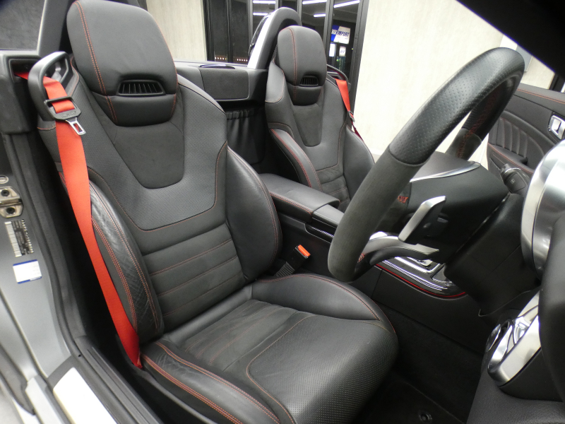 ナッパレザー/DINAMICAシート フルレザー仕様 レッドカラーステッチング レザーDINAMICAルーフライナー ブラックアッシュウッドインテリアトリム サンリフレクティングレザー アルミニウムロールバー ステンレスアクセル&ブレーキペダル メモリー付パワーシート 電動ランバーサポート エアスカーフ AMGパフォーマンスステアリング(ナッパレザー/DINAMICA)