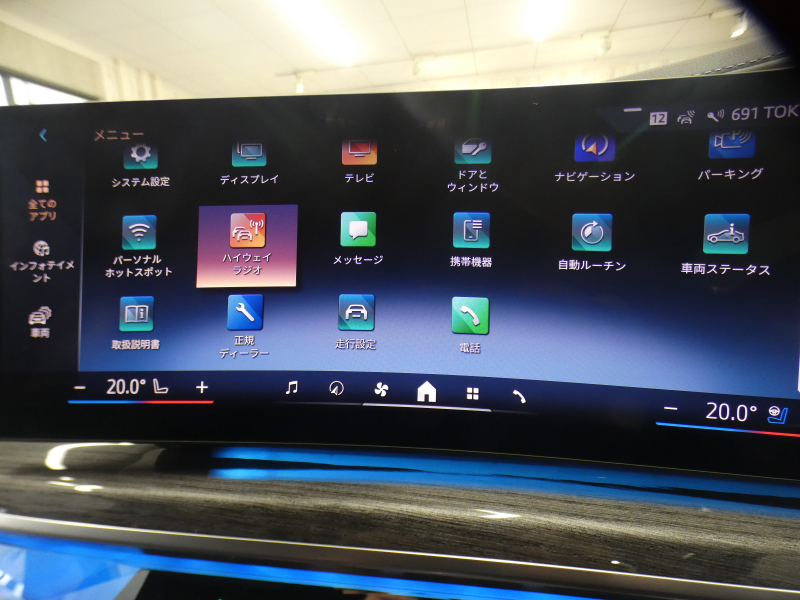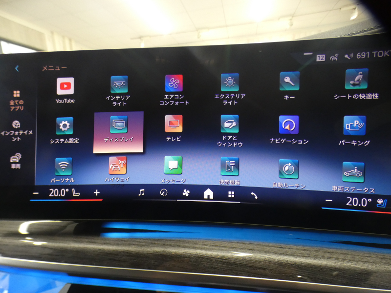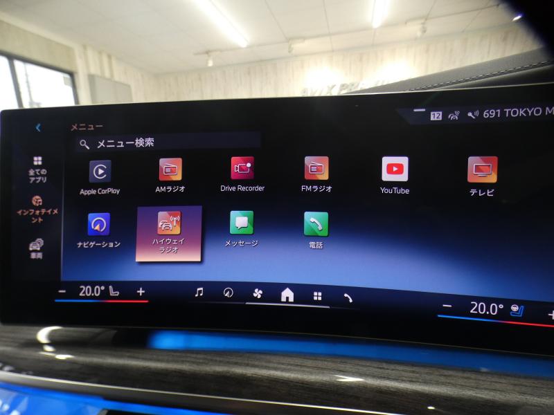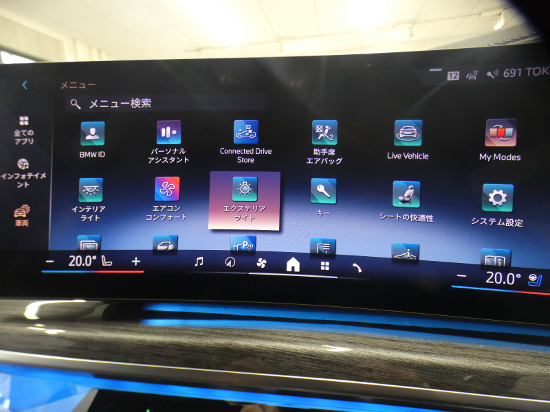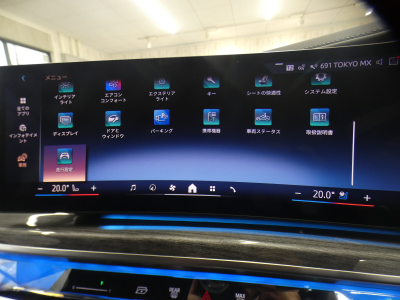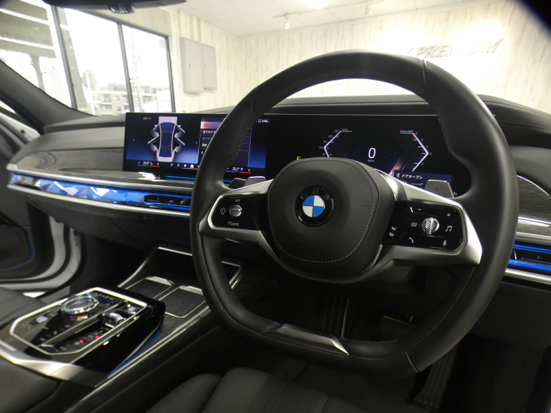 BMWライブ・コックピット(BMWカーブド・ディスプレイ、12.3インチ マルチ・ディスプレイ・メーター・パネル、14.9インチ ワイド・コントロール・ディスプレイ (タッチ・パネル機能付)、HDDナビゲーション・システム(VICS 3メディア対応)、BMWインテリジェント・パーソナル・アシスタント (AI音声会話システム))、ワイヤレス・チャージング、パーソナルeSIM、ハンズフリー・テレフォン・システム、ITSスポット対応DSRC車載器(ルーム・ミラー内蔵、ETC機能付)、電動式チルト&テレスコピック・ステアリング・コラム クラフテッド・クリスタル・フィニッシュ、アンビエント・ライト、BMWインタラクション・バー、オーディオ・ビジュアル・システム(地上デジタルTVチューナー)、USBオーディオ・インターフェイス、トラベル&コンフォート・システム(Type-C対応USBソケット(高速充電機能付))、4ゾーン・オートマチック・エア・コンディショナー (ナノ・ファイバー・フィルター〔花粉除去機能〕付)(運転席&助手席 独立温度調節機能 後席左右 独立温度調節機能 パーキング・ベンチレーション リモート・クライメート・コントロール機能)、シート(マルチファンクション・シート(運転席&助手席、メモリー機能付) アクティブ・ベンチレーション・シート(運転席&助手席)、マッサージ・シート(運転席&助手席)、シート・ヒーティング(フロント&リヤ))、スルーローディング・システム、センサテック・フィニッシュ・ダッシュボード、ベロア・フロア・マット、リーディング・ライト、リヤ・サイド・ウインドー・ローラー・ブラインド(電動)、クライメート・コンフォート・ガラス(赤外線反射ガラス:全面)、自動防眩ルーム・ミラー、照明付バニティ・ミラー(フロント)、照明付バニティ・ミラー(リヤ)、照明付グローブ・ボックス、ドア・シル・プレート、フロント・センター・アームレスト(収納ボックス付)、リヤ・センター・アームレスト(収納ボックス付)、カップ・ホルダー(フロント&リヤ)、ストレージ・パッケージ(Type-C対応USBソケット )
