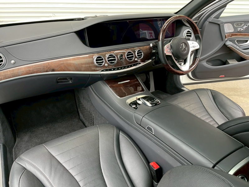 安心の右ハンドル、正規ディーラー車!! 取説・記録簿付 事故歴ありません!! 綺麗な外装色ダイヤモンドホワイトに、純正18インチアルミホイール、ロングボディが迫力有るエクステリアを演出!! 使用感はとても少なく広々とした室内は高級感漂うブラックナッパレザーシート(ドライビングダイナミックシート・リラクゼーション機能付)にパノラミックスライディングルーフや全席シートヒーター&ベンチレーター、4ゾーンエアコン、Burmesterサウンドシステム、さらにはショーファーパッケージならではのリアエンターテイメントシステム、各アームレストヒーター、フットレスト付エグゼクティブリアシート上級サルーンに相応しい同乗者も快適なドライビングをご堪能できます!! 使い勝手の良い純正HDDナビに運転操作をサポート360°カメラ、レーダーセーフティパッケージも装備!! 3L 直列6気筒ターボディーゼルエンジンと9G-TRONICがフラッグシップサルーンに相応しい走行性、環境・燃費性能を実現しています!! 実用性と先進性を兼ね揃えた人気車輌をお届け致します!!