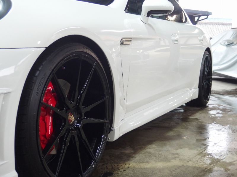 当社オリジナルブランド 『EUR SPORTS』パナメーラ後期モデル用のエアロキットと22インチアルミホイール、ESダウンサスでスタイル・迫力ともにキマッたおススメのPORSCHE パナメーラ EUR-GT!!