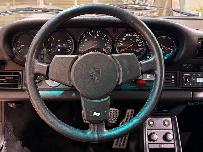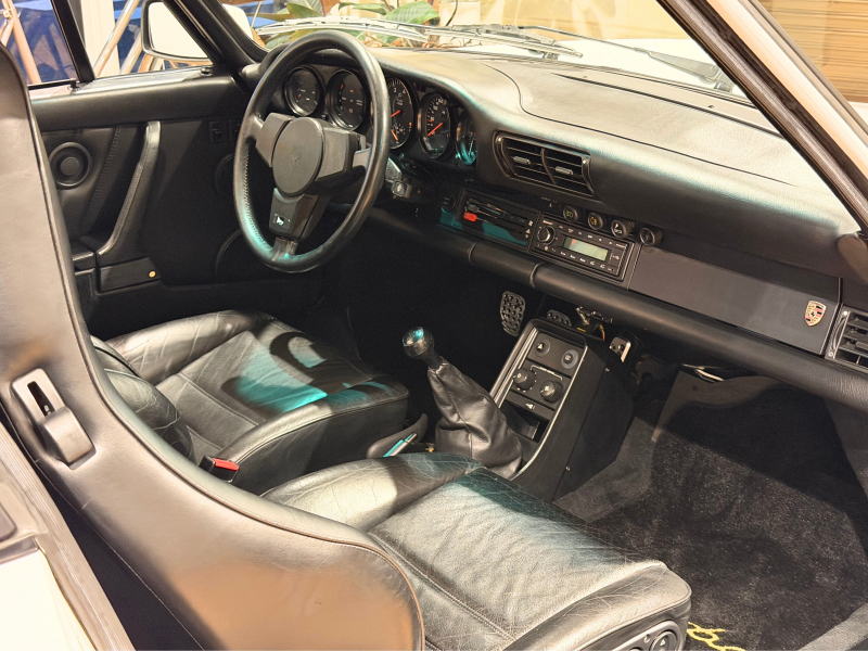 スタイリングの象徴であるワイドなリアフェンダーと大型リアスポイラーは、930ターボのアイコンであると同時に、機能美の結晶でもあります。ワイドトレッド化により優れた直進安定性とトラクションを確保し、専用サスペンションとブレーキシステムが、当時としては群を抜く動力性能をしっかりと受け止めます。公道で操るだけで、常に適度な緊張感と高揚感を伴う、この時代独自の「機械と対話する愉しさ」が930ターボ最大の価値と言えるでしょう。