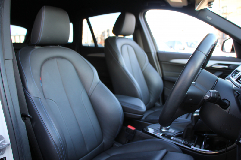 BMW X1 Xdrive18d Mスポーツ ハイライン コンフォートP 4WD 中期 変更後タッチパネル対応HDDナビ新デザインメーター ヒーター黒革 電動シート&メモリー 追従ACC HUD Pアシスト Bカメラ 電動トランク 衝突軽減ブレーキ 車線逸脱警告 歩行者警告 LEDヘッドライト 2年保証