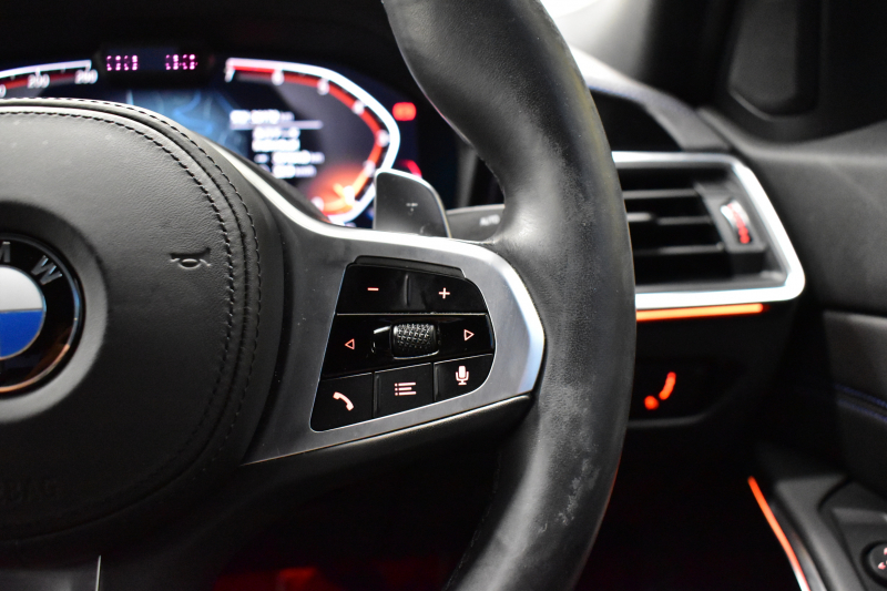BMW 3シリーズ 320i Mスポーツ デビュー&コンフォートP ヒーター付黒革 社外フルセグTV 追従ACC HUD LCW 19AW 衝突軽減B 車線逸脱&歩行者警告 ライブコックピット アップルカープレイ Bカメラ 電動トランク ワイヤレス充電 ウッドインテリア 2年保証
