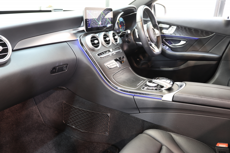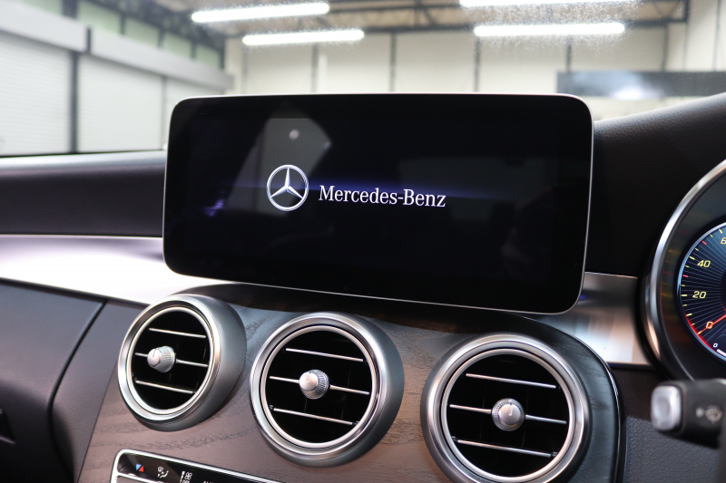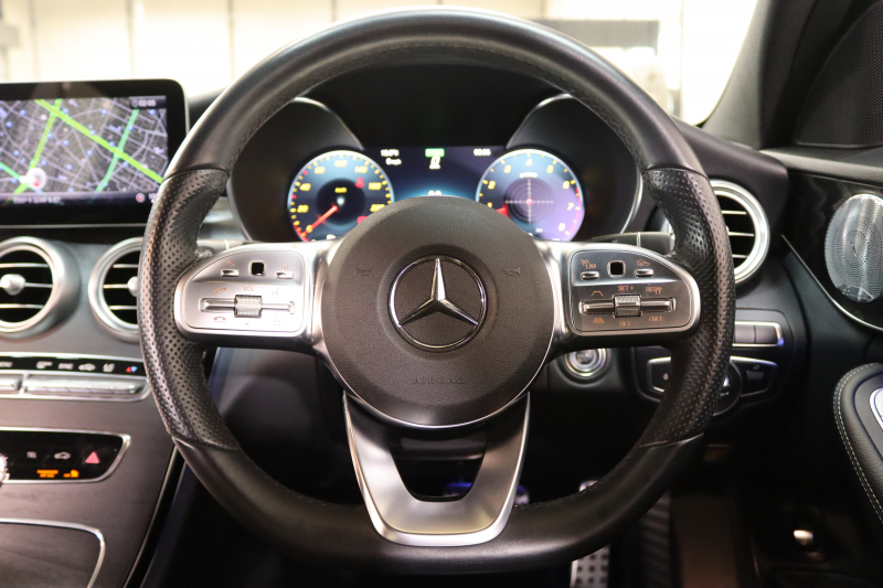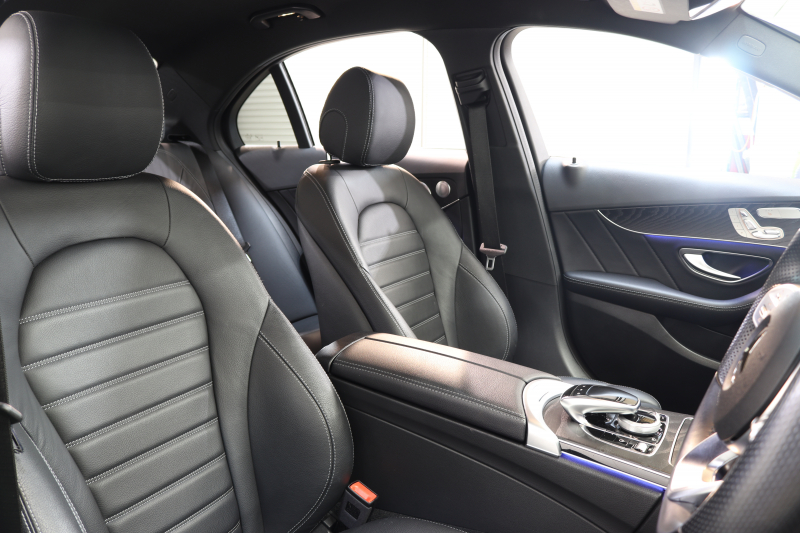 メルセデスベンツ Cクラス C200 AVG AMGライン レザーエクスクルーシブ&レーダーセーフティPKG BSG搭載 後期 キーレスゴー 黒本革 ヘッドアップD HDDナビTV スマホ連携 ブルメスター バックカメラ PTS LEDライト ハンズフリーA AMGエアロ&18AW エアサス 9AT 2年保証