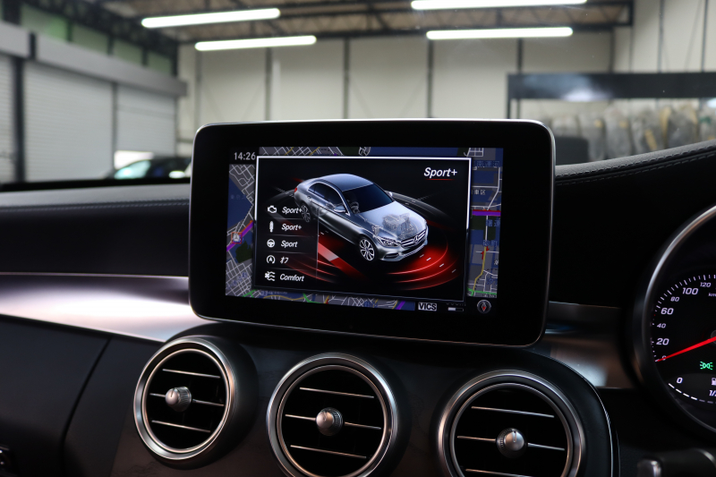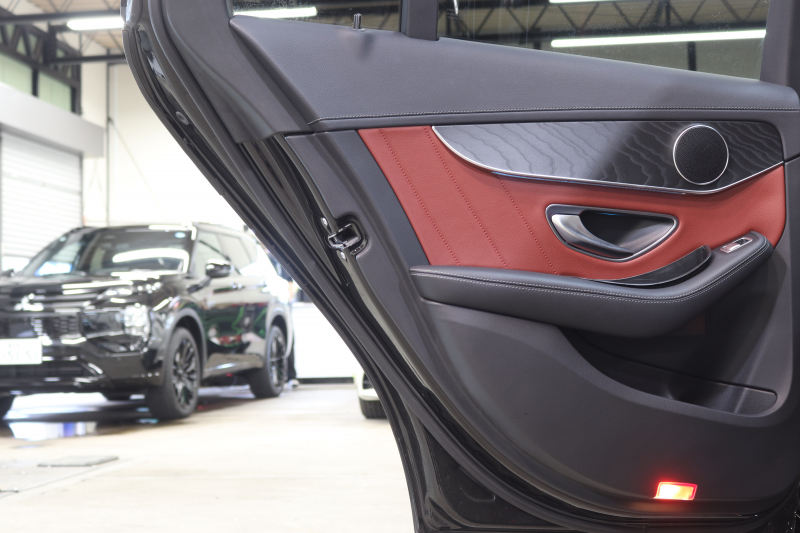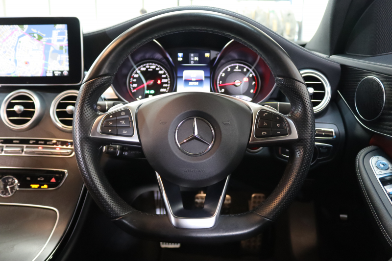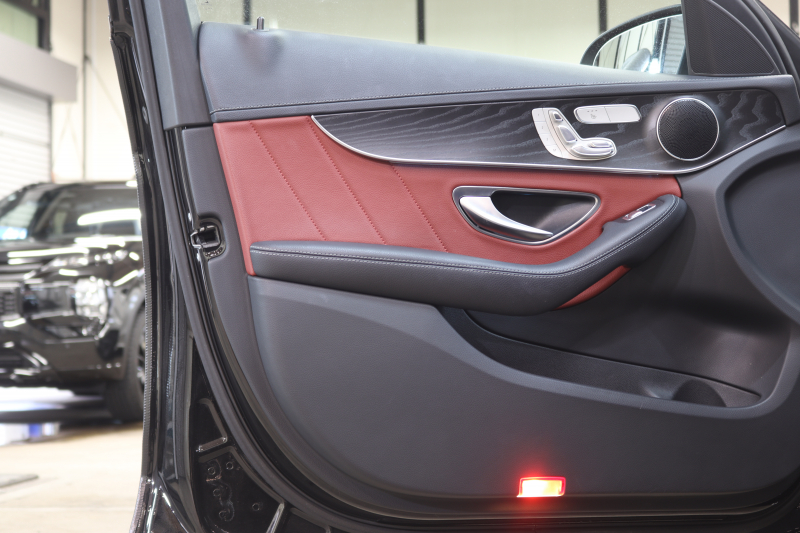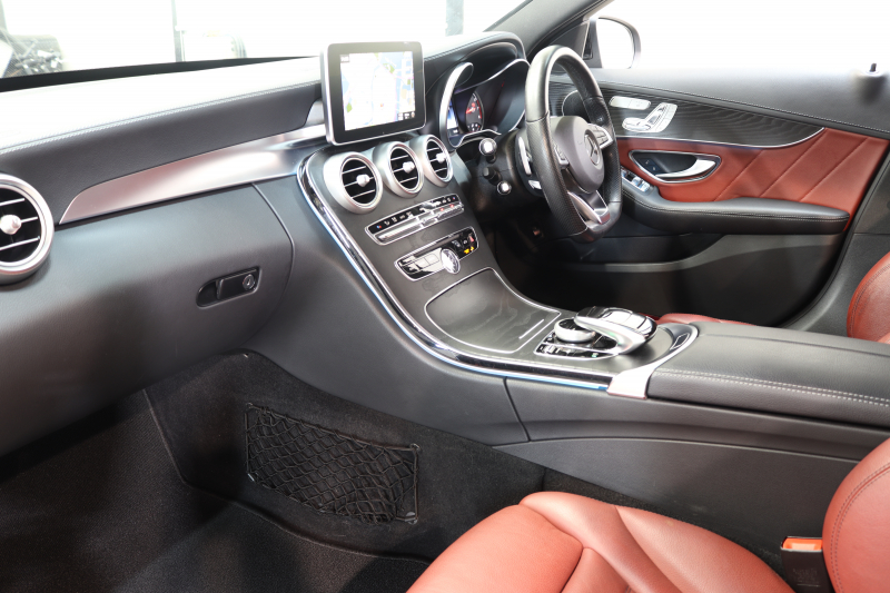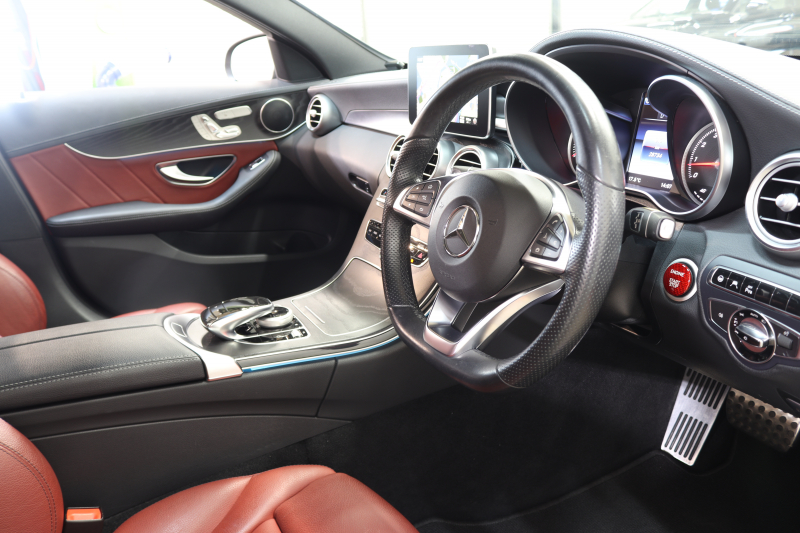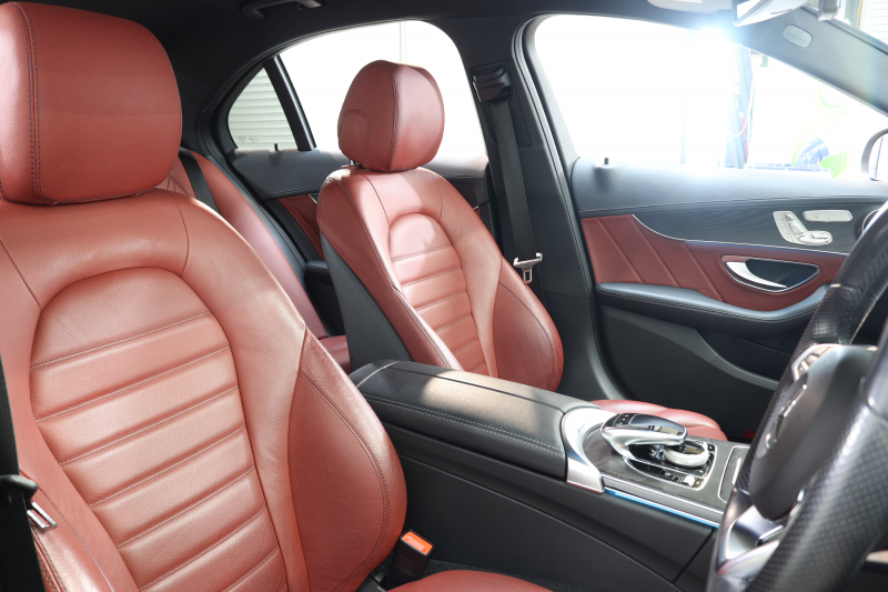 メルセデスベンツ Cクラス C200 AVG AMGライン レザーエクスクルーシブ&レーダーセーフティPKG キーレスゴー 赤本革 HDDナビTV BT音楽 バックカメラ PTS LEDライト ハンズフリーA AMGエアロ&18AW ダイナミックS エアサス 2年保証