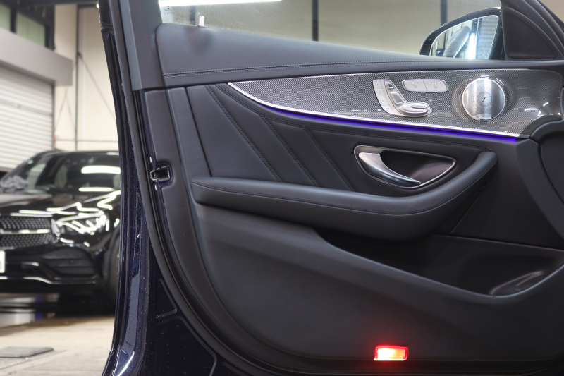 AMG Eクラス E43 4MATIC ステーションワゴン エクスクルーシブ&レーダーセーフティPKG キーレスゴー 黒本革 ベンチレーター パノラマSR ヘッドアップD HDDナビTV スマホ連携 ブルメスター 360カメラ PTS LEDライト ハンズフリーA AMG専用装備&チューニング 9AT 希少色カバンサイトブルー 2年保証