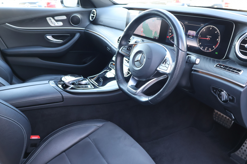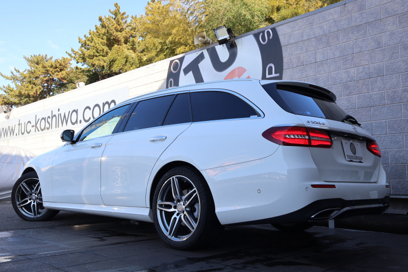 メルセデスベンツ Eクラス E220d ステーションワゴン AVG スポーツ レーダーセーフティPKG AMGスタイリングPKG 黒ハーフ革シート シートヒーター 純正ナビ地デジ 360°カメラ Applecarplay Android Auto 電動Rゲート フットトランクOP マルチビームLED 純正ルーフキャリア AMG19AW 2年保証