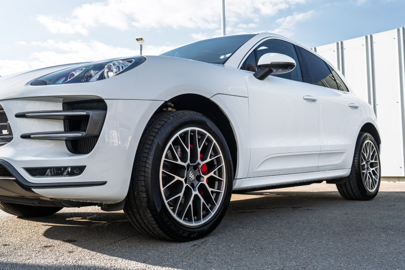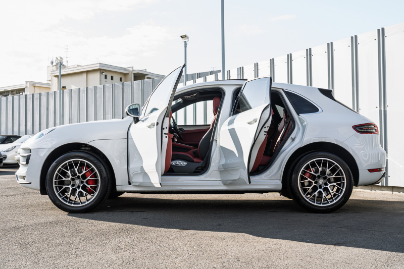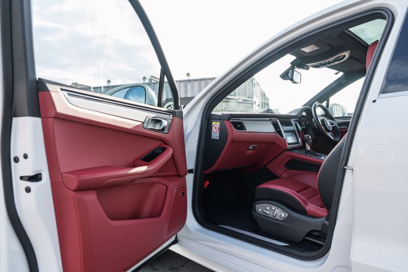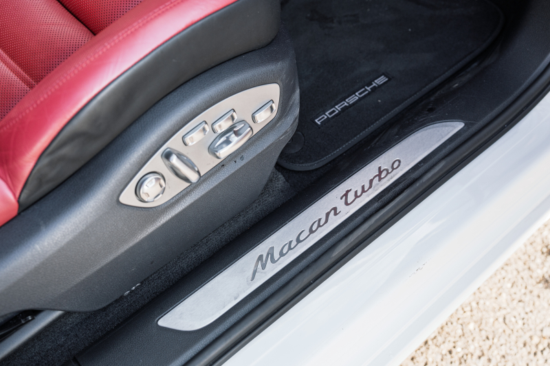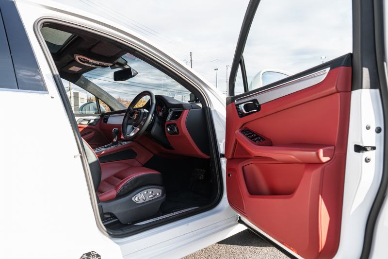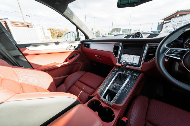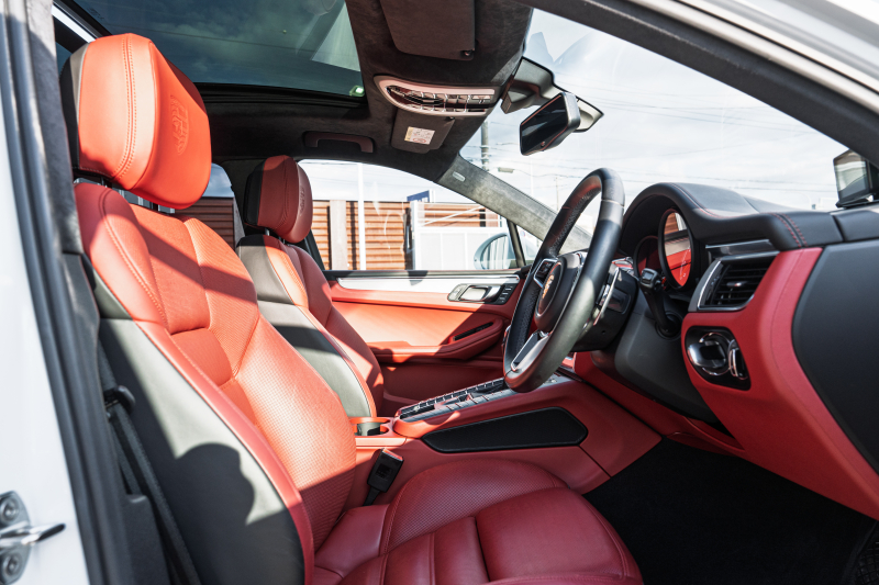 ポルシェ マカン ターボ スポーツクロノPKG ツートンレザーインテリア(ガーネットレッド/ブラック) アダプティブスポーツシート ベンチレーター パノラマサンルーフ ナビTV PASM/エアサス エントリードライブ RSスパイダー20インチAW 2年保証