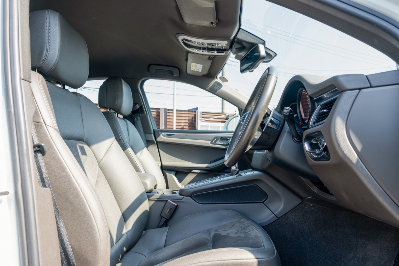 ポルシェ マカン ベースグレード 2017年モデル アゲートグレーハーフレザーシート PCMナビ パークアシスト TPM クルーズコントロール ルーフレール オートテールゲート LDW カラークレストキャップ マカンターボ19インチAW 2年保証