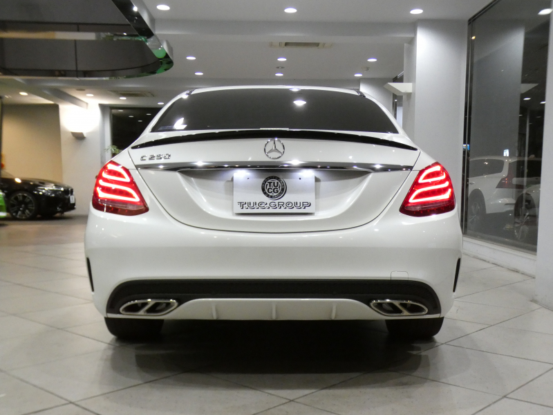 メルセデスベンツ Cクラス C250スポーツ レーダーセーフティPKG キーレスゴー ☆有償色 黒革 ヒーター ナビTV Bカメラ PTS LEDライト アンビエントライト パナメリカーナグリル トランクスポイラー AMGスタイリング&19AW 2年保証