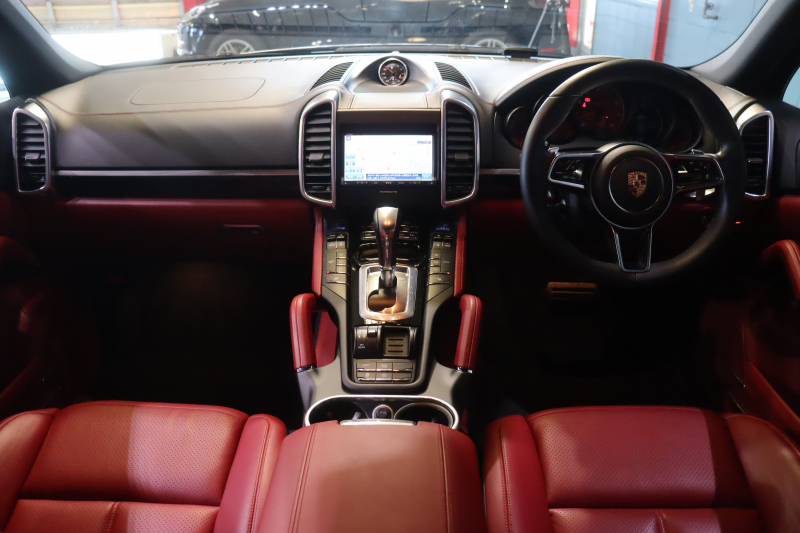 ポルシェ カイエン スポーツクロノP MY16 後期 ツートンレザーインテリア(レッド/ブラック) 純正ナビ エントリードライブ メモリー付き14way電動シート シートヒーター スポーツテールパイプ SPORT PLUSモード 18インチカイエンAW 2年保証