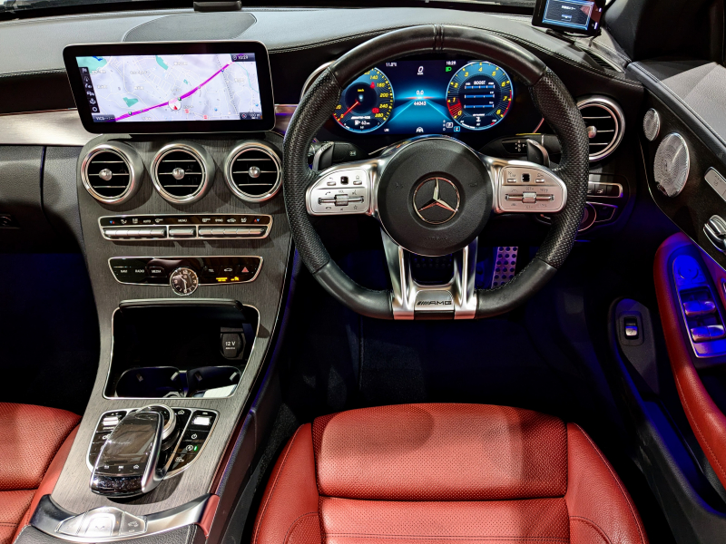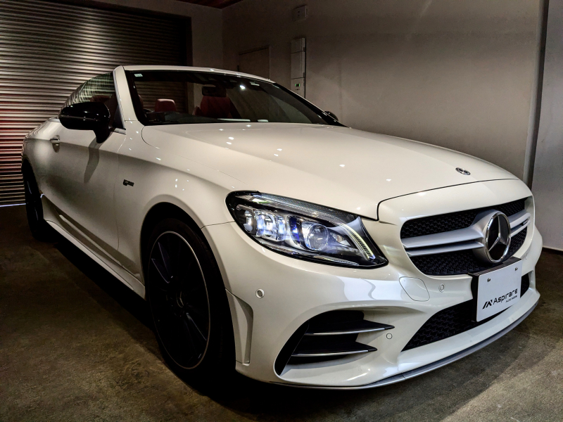 AMG Cクラス C43カブリオレ 4マチック 後期モデル レザーエクスクルーシブ レッドレザー Burmesterサウンド ヘッドアップディスプレイ レッドトップ コックピットディスプレイ 1オーナー