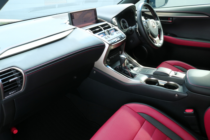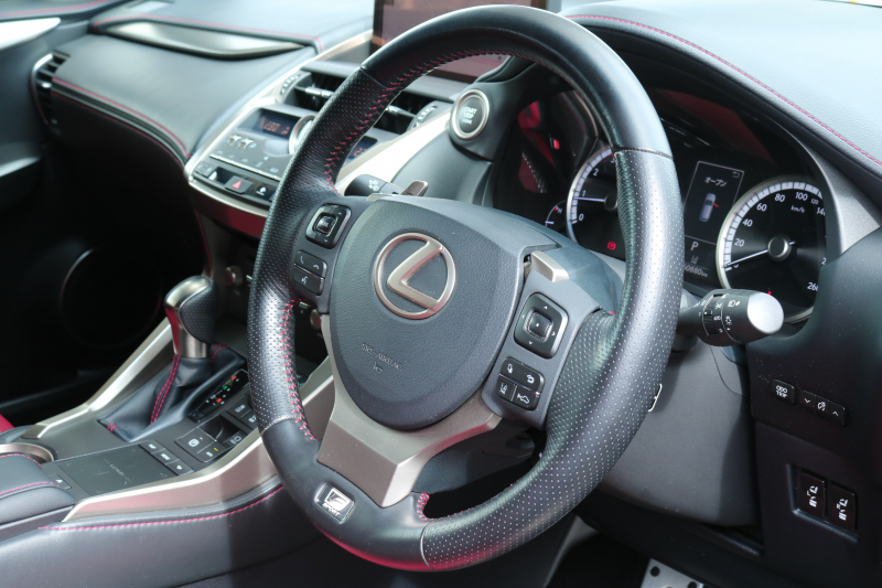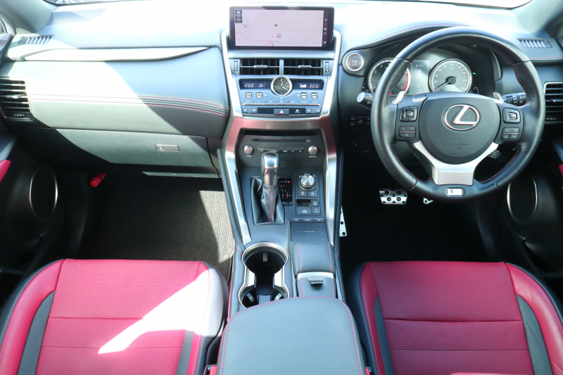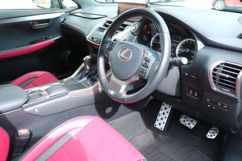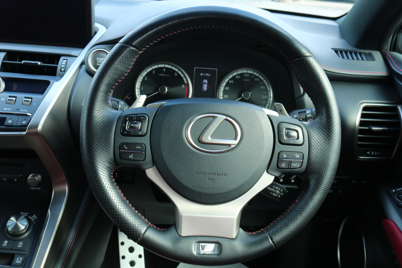 レクサス NX NX300 Fスポーツ TRD レクサスセーフティシステム+ レッドレザーシート ムーンルーフ BSM シートヒーター ステアリングヒーター 純正ナビTV 3眼LEDヘッドライト アダプティブハイビーム パノラミックビューモニター ハンズフリーパワーバックドア HUD 2年保証