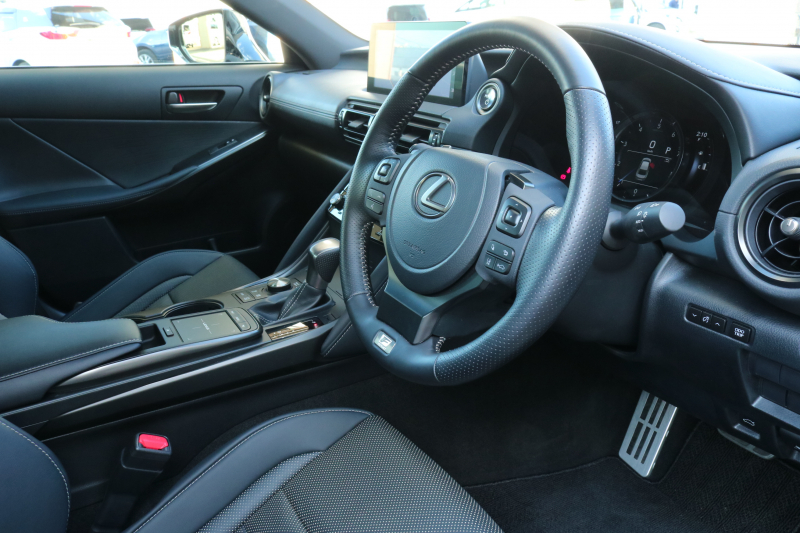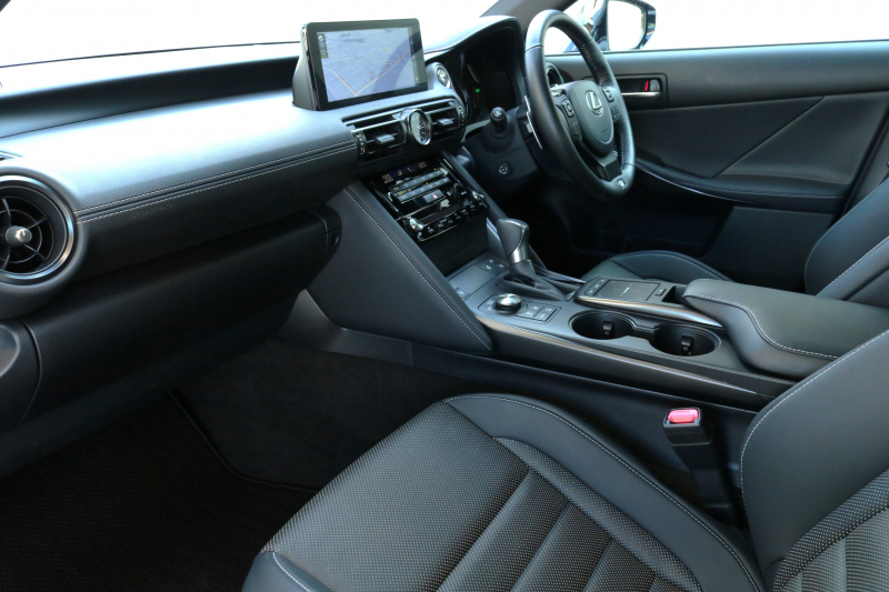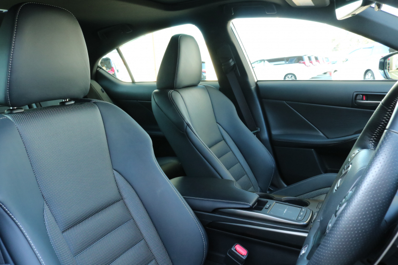 レクサス IS 300h Fスポーツ ワンオーナー LSS+ ムーンルーフ 黒本革シート オレンジキャリパー パノラミックビューモニター 3眼LEDヘッドライト アダクティブハイビームシステム 純正19インチAW 10.3インチタッチワイドディスプレイ 2年保証