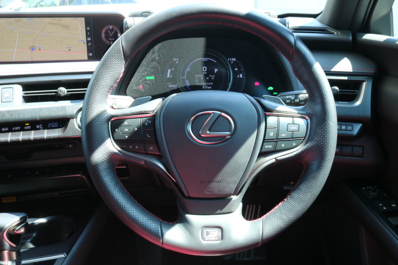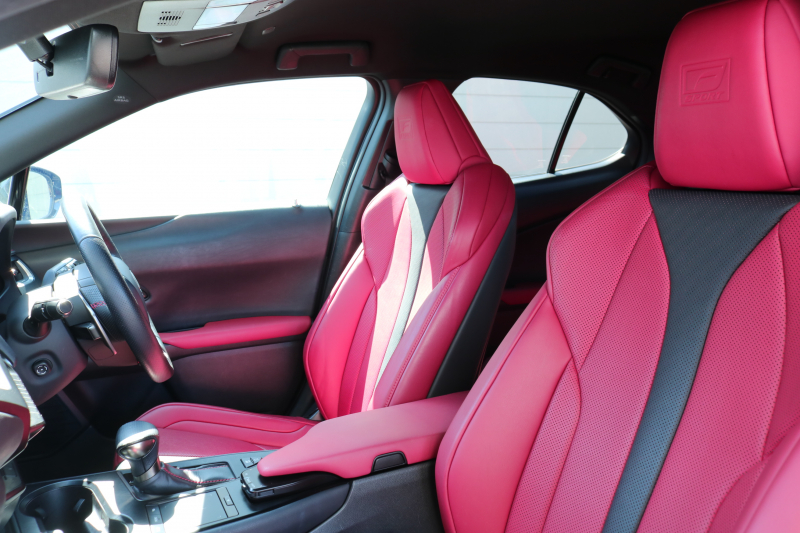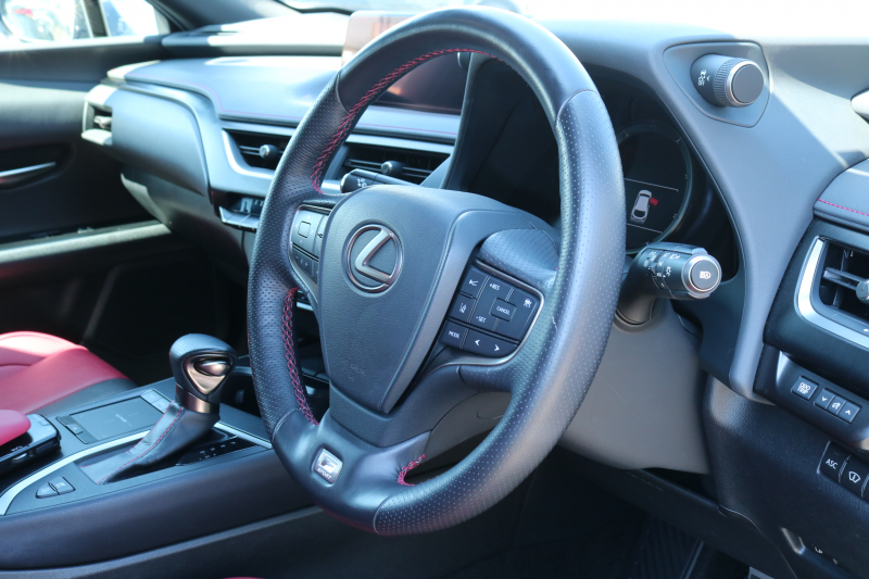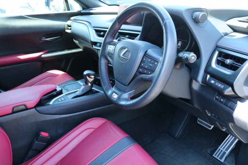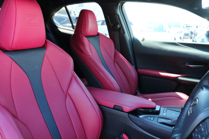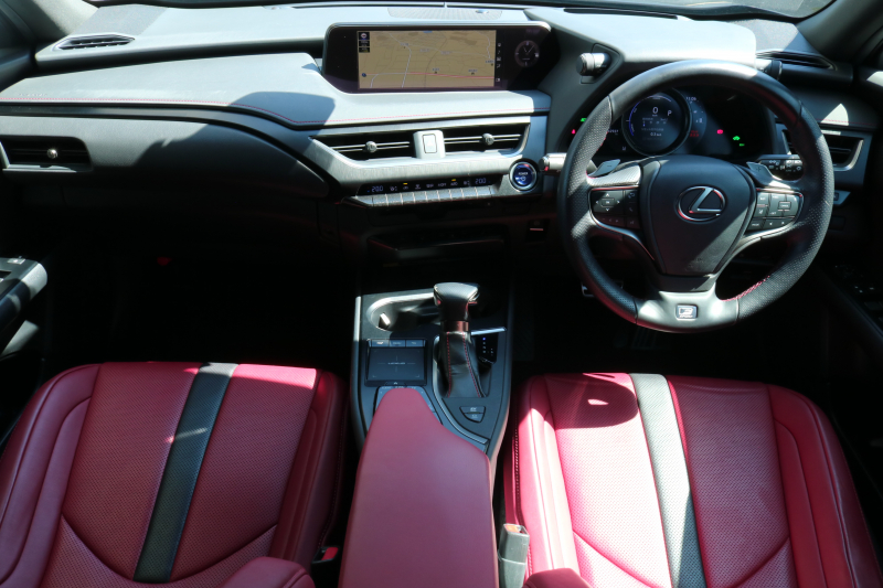 レクサス UX UX250h Fスポーツ レクサスセーフティシステム+ フレアレッド/ブラック革シート アダクティブハイビームシステム カラーヘッドアップディスプレイ ルーフレール 純正ナビTV パワーバックドア 3眼ヘッドライト ブラインドスポットモニター 置くだけ充電 2年保証