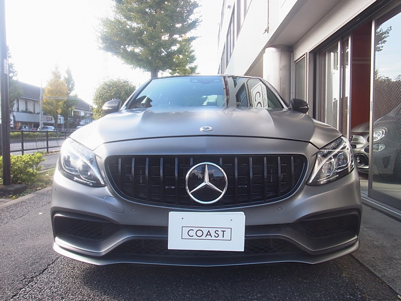 AMG Cクラス C63 S エクスクルーシブPKG パノラミックサンルーフ 鍛造19AW 車検対応Akrapovicチタンマフラー KW製車高調 マットグレーラッピング エアバランスPKG 純正ナビ TV 360カメラ