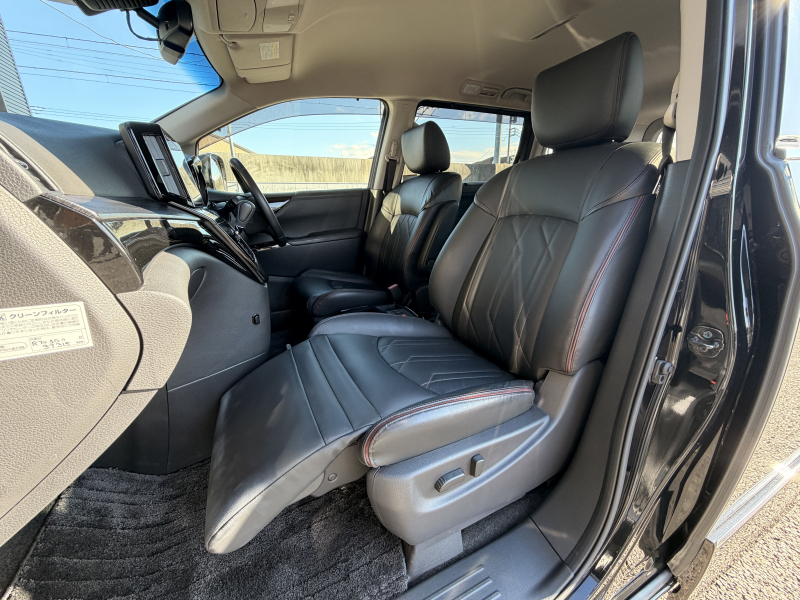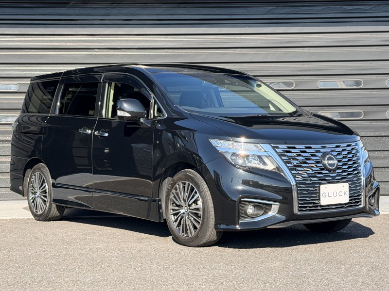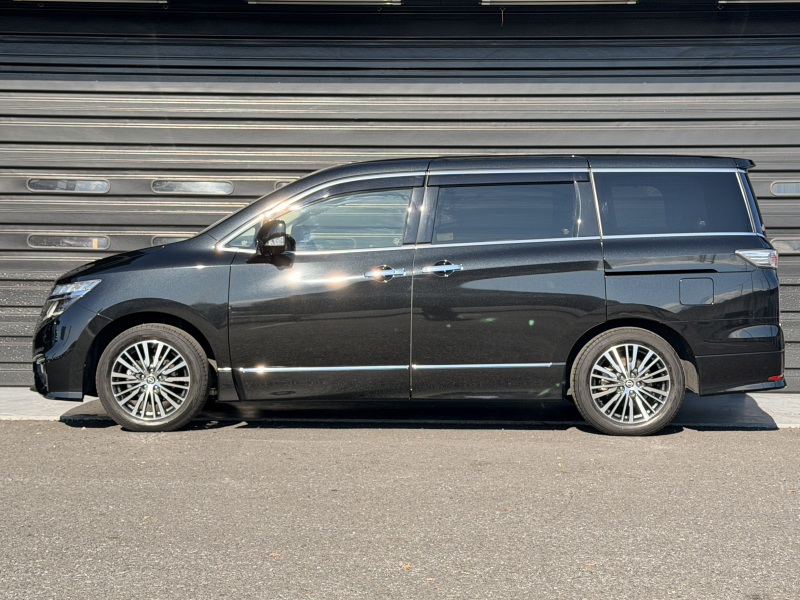 日産 エルグランド 2.5 250ハイウェイスター プレミアム 1オーナー 禁煙車 黒革 ヒーター付電動フロントシート 運転席シートメモリー 360度カメラ 両側パワースライドドア オットマン パワーテールゲート 純正ドラレコ前後 2列目シェード ACC 純正18AW デジタルTV