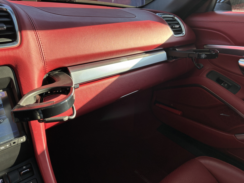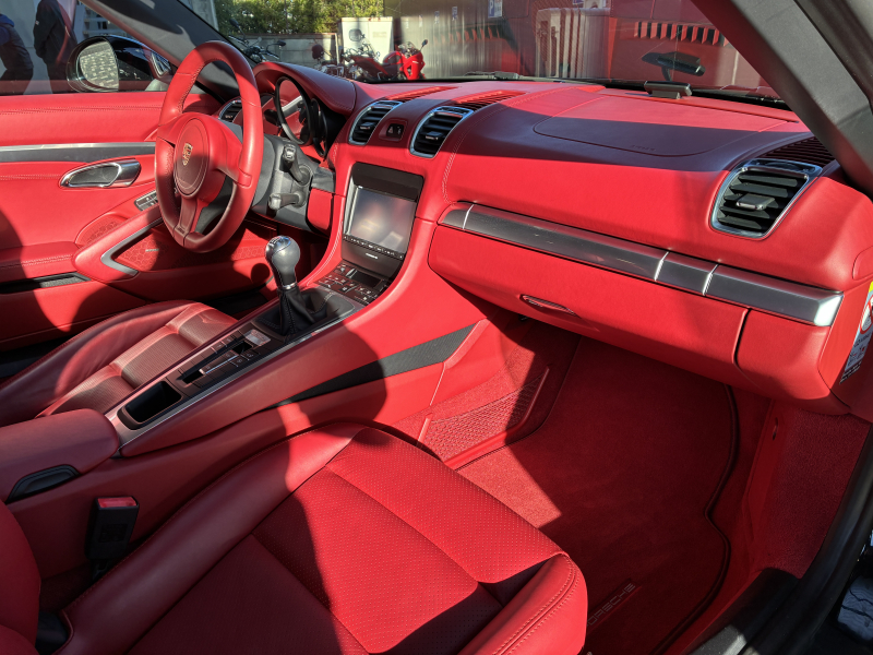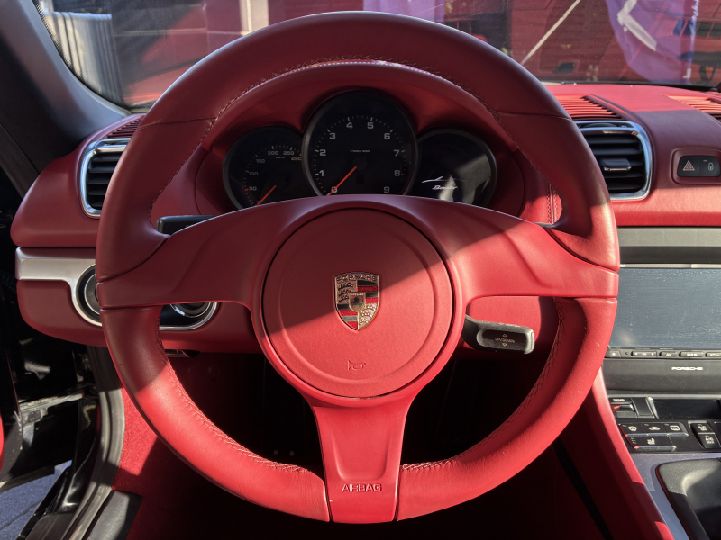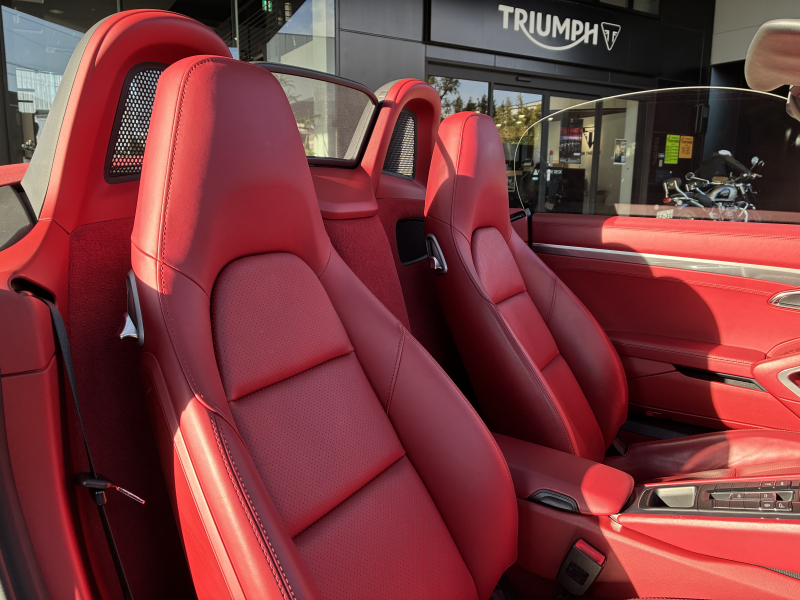 ポルシェ ボクスター(Type981) ボクスター 左ハンドル 6速MT 赤革 純正ナビ バックカメラ 2Way電動シート レッドソフトトップ 純正18インチA/W 電動格納ドアミラー SPORTモード バイキセノンヘッドライト スポーツシート ブラックキャリパー