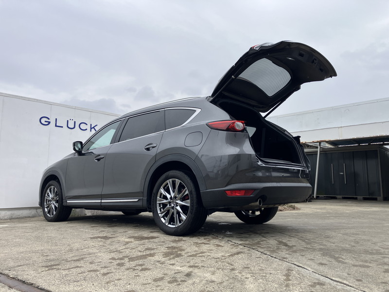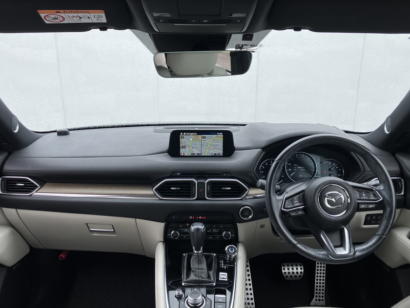 マツダ CX-8 2.5 25T Lパッケージ 4WD/ワンオーナー/禁煙車/アルパイン後席モニター/全周囲カメラ/ホワイトレザーシート/シートエアコン&ヒーター/パワーシート/後席シートヒーター/ヘッドアップディスプレイ/パワーバックドア