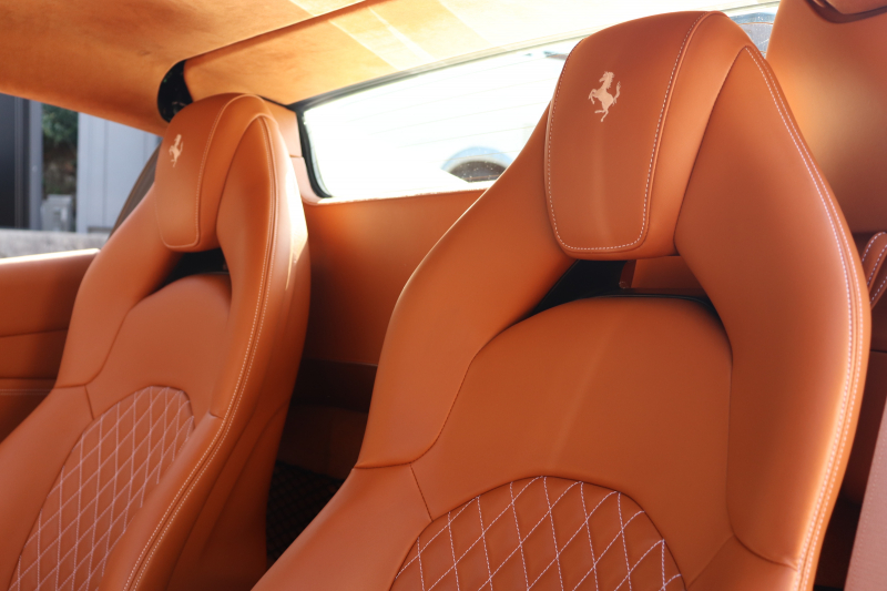 本個体はビアンコ・イタリアのボディにクオイオ4609のインテリアというフェラーリらしさと品の良さが共存する組み合わせで仕立てられています。
