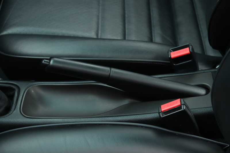 サンルーフレス仕様ブラックメタリックの外装にブラックレザー内装、MTという組み合わせ。