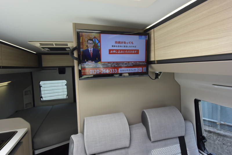 Lac Package、16インチアルミホイール、カラーパッケージ、サイドオーニング、エントランスドア網戸、ソーラーパネル80W、ACフロアヒーター、ルーフエアコン Truma2200、NAVI 9型 パナソニックストラーダー、ETC2.0、バッテリー2個増設(サブバッテリー計3個)、インバーター 2000W PowerTite、バッテリー過放電予防装置、100V電源切替器、マルチチャージャー、走行充電アイソレーターグレードアップ、コーチ部TV19型 HDMI端子付、ナビサブバッテリー切替スイッチ作業、NAVI映像をコーチ部TVに連動作業(HDMI)、アラウンドビューモニター