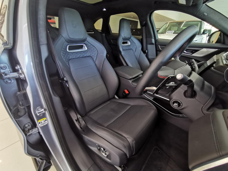 ジャガー F-PACE SVR 5.0L P550 4WD 1オーナー 黒革シート パノラミックルーフ シートヒーター&クーラー MERIDIAN™サウンド 22インチアルミホイール メモリーシート インタラクティブドライバーディスプレイ ワイヤレスデバイスチャージング