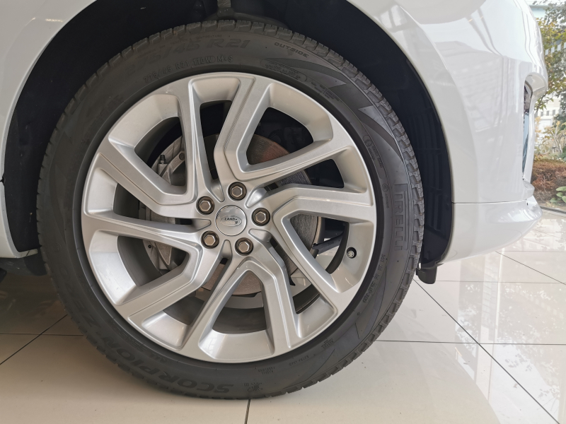 ボディカラーは、ランドローバー屈指の人気カラーユーロンホワイトで、大口径の21インチグロスブラック仕上げのホイールを装備しています。